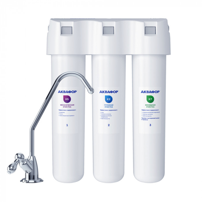 Фильтр для глубокой фильтрации воды с повышенным содержанием механических примесей. Увеличенный ресурс и легкая замена картриджей. Удаляет хлор, тяжелые металлы, пестициды, нефтепродукты и другие распространенные загрязнители. Подает чистую питьевую воду на отдельный кран.