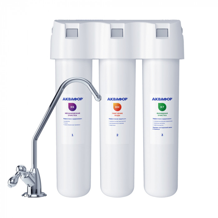 Фильтр для глубокой фильтрации воды средней жесткости с повышенным содержанием механических примесей. Увеличенный ресурс и легкая замена картриджей. Удаляет хлор, тяжелые металлы, пестициды, нефтепродукты и другие распространенные загрязнители. Подает чистую питьевую воду на отдельный кран.