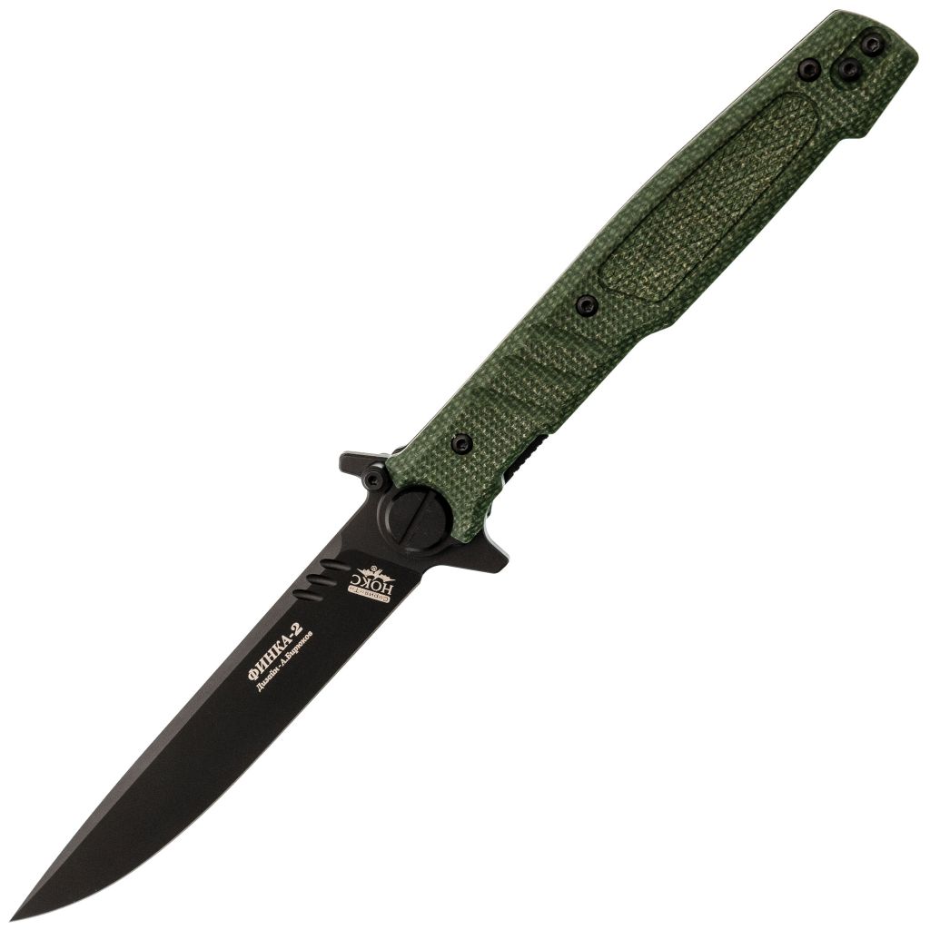Представляем в наличии складной нож НОКС Финка 2, арт. 349-700106. Это компактная модель с выкидным лезвием длиной 110 мм. В умелых руках это опасное холодное оружие и универсальный инструмент. Тонкая режущая шина указывает на отсылку к популярным финкам от бренда НОКС. Второе поколение отличается рядом улучшений, которые сделали аксессуар более универсальным и удобным в повседневном использовании. Главным отличием стала сталь клинка, а также несколько измененная геометрия.
