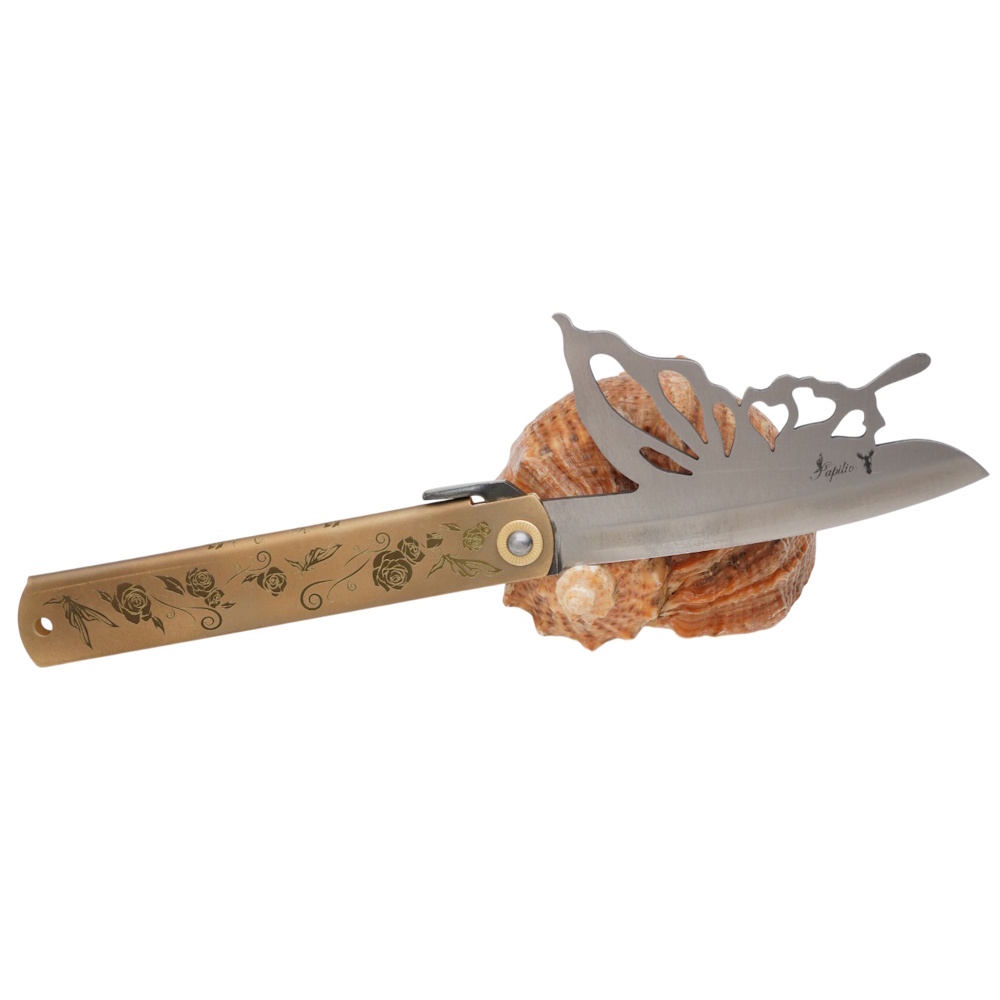 Складной нож Nagao Higonokami Papilio - Butterfly, 100мм, сталь Aogami Silver, рукоять латунь Hitachi Aogami Ножиков | V4.Ru: Маркетплейс