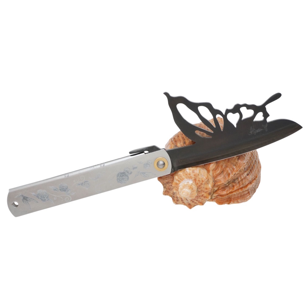Складной нож Nagao Higonokami Papilio - Butterfly, 100мм, сталь Aogami Black, рукоять металл