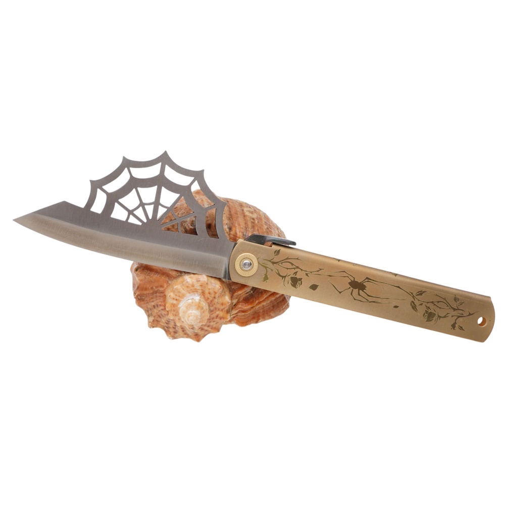 Складной нож Nagao Higonokami Aranea - Spider, 100мм, сталь Aogami Silver, рукоять латунь