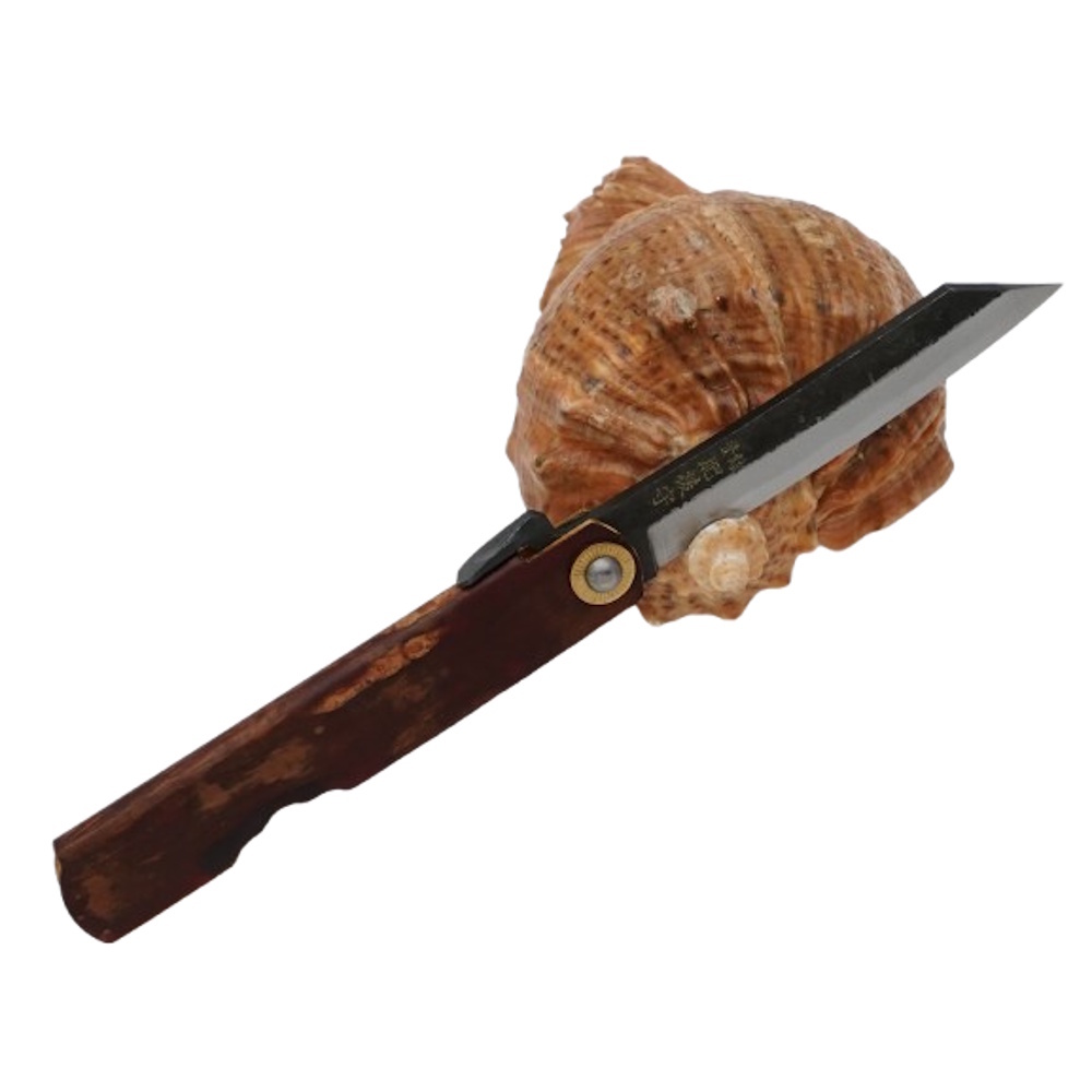 Складной нож Nagao Higonokami Kabazaiku, 80мм, сталь Aogami Kurouchi, рукоять латунь, Cherry blossom style Hitachi Aogami Ножиков | V4.Ru: Маркетплейс