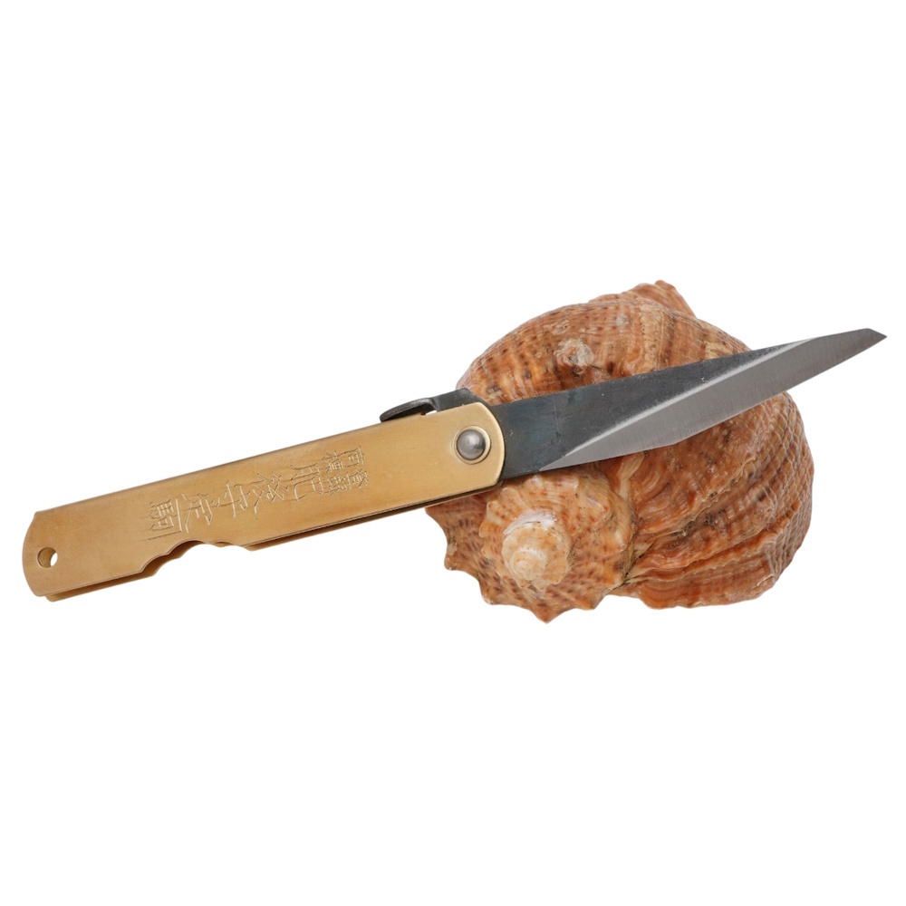 Складной нож Nagao Higonokami Single bevel, 70мм, сталь Aogami, рукоять латунь Hitachi Aogami Ножиков | V4.Ru: Маркетплейс