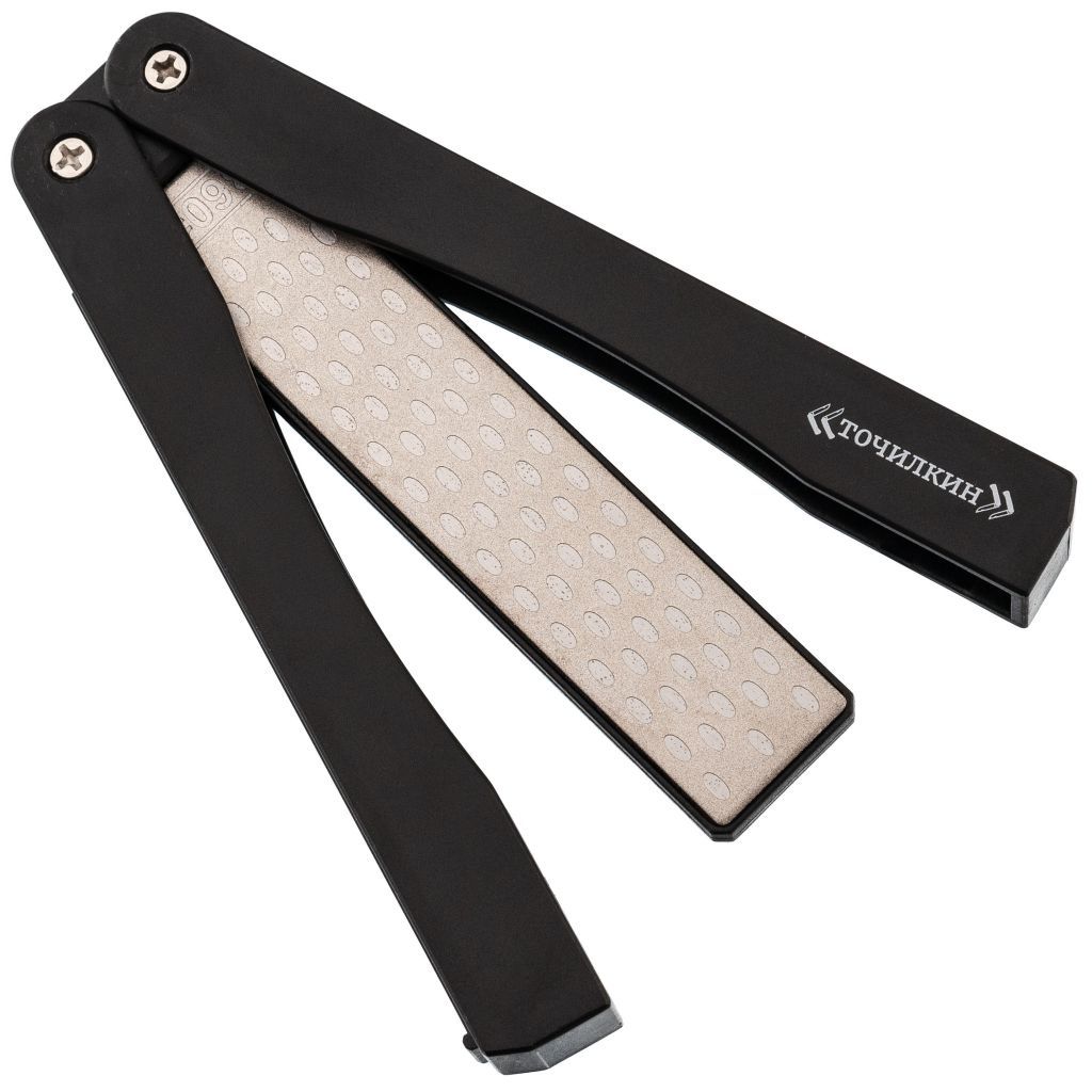 Алмазная точилка Точилкин T-31 — это компактный и удобный инструмент для заточки, который благодаря своему форм-фактору балисонга легко помещается в карман и всегда будет под рукой. С такой точилкой вы сможете не только поддерживать идеальную остроту своего ножа, но и продемонстрировать впечатляющие флиппинг-трюки, которые, возможно, принесут вам призовое место на конкурсе.Точилка имеет две рабочие поверхности с зернистостью 360 и 600, которые предназначены для обдирки и формирования режущей кромки. Грубая зернистость 360 подходит для предварительной обработки и удаления дефектов, в то время как более тонкая зернистость 600 позволит придать лезвию необходимую остроту.