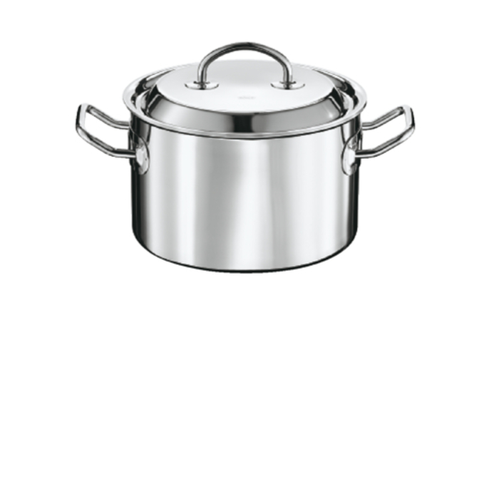 Идеально подходит для кипячения, жарки и тушения. Изготовлено из высококачественной нержавеющей стали 18\10. Равномерно распределяет тепло и длительное время его сохраняет. Легко чистится и не требует особого ухода.