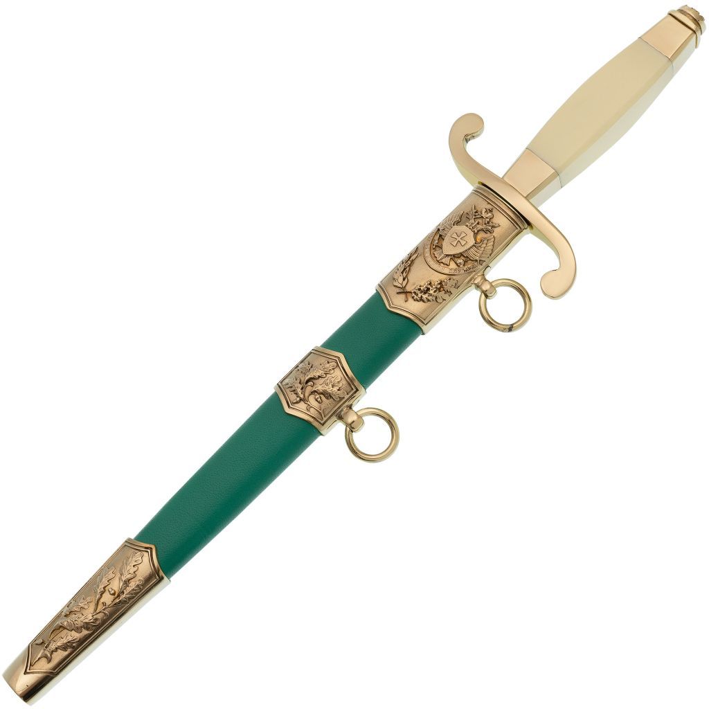 Сувенирный кортик пограничной службы - это реалистично исполненная реплика, которая станет отличным дополнением к коллекции любого военного или энтузиаста военной тематики. Он идеально подойдет для съемок фильмов или фотосессий, добавляя аутентичности и серьезности изображаемому сюжету.Кортик изготовлен с высоким качеством, и при поверхностном взгляде сложно отличить его от настоящего. Он не относится к категории холодного оружия благодаря отсутствию заточки и средней твердости стали (20-24 HRC). Это означает, что кортик может быть продан без лицензии любому заинтересованному покупателю.Этот сувенирный кортик станет ценным подарком для тех, кто ценит военную историю и хочет добавить в свою коллекцию уникальный и реалистичный предмет.Вес с ножнами - 295