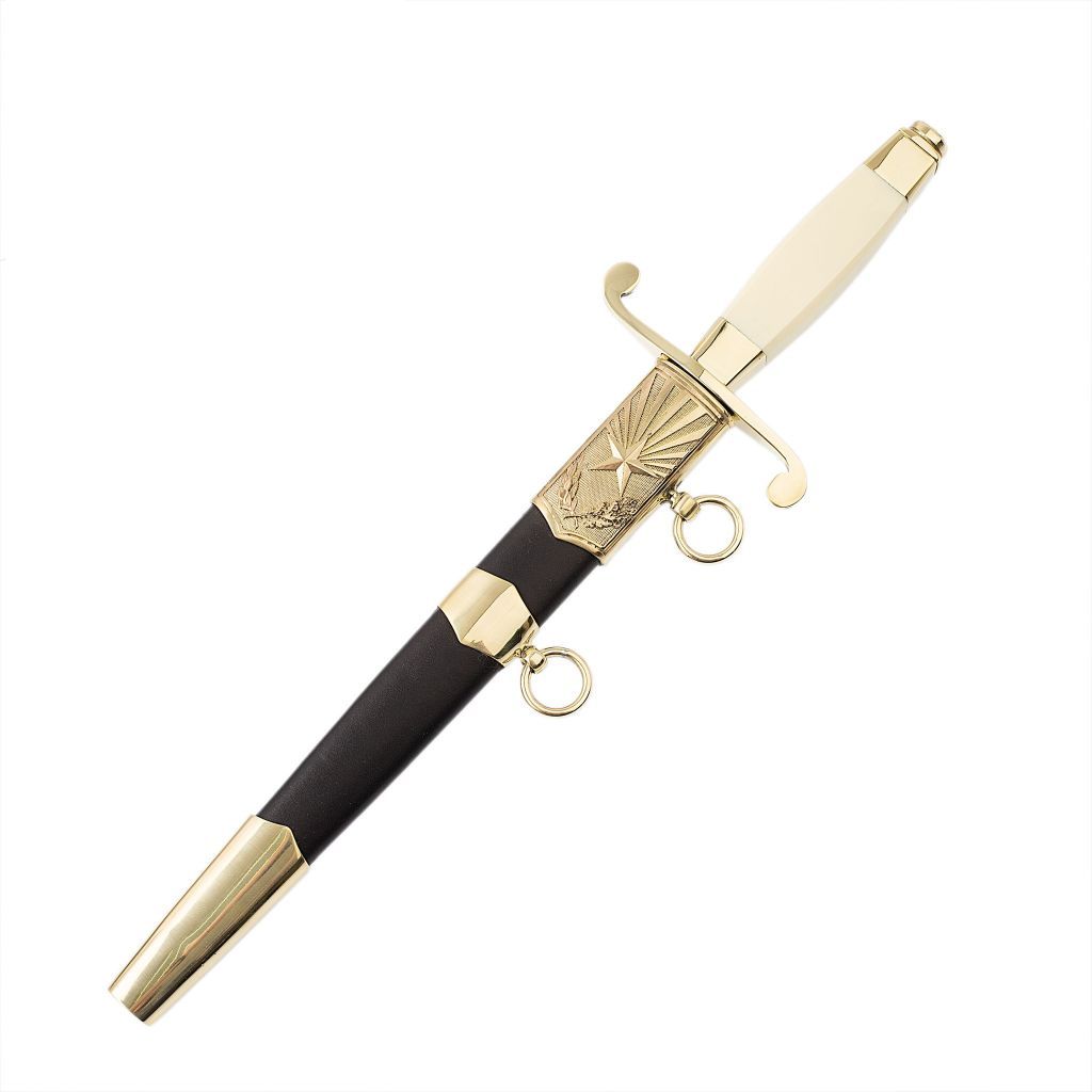Кортик Офицерский ОбщевойсковойКОРТИК ОФИЦЕРСКИЙ ОБЩЕВОЙСКОВОЙ это модель, которая выполнена по историческим прототипам. Здесь учтены все мельчайшие детали, которые позволяют отнести кортик к лучшим коллекционным образцам. Узкий и длинный стальной клинок имеет ромбическое сечение, как и у своего боевого прототипа. Ведь изначально кортики использовались на военном морском флоте в качестве защитного оружия от нападения пиратов. Компактные размеры позволяют эффективно использовать кортик и ближнем бою в условиях ограниченного пространства. Интересное решение используется для создания ножен: деревянный каркас обтянут натуральной кожей. Устье и обоймица ножен выполнены из латунного сплава.