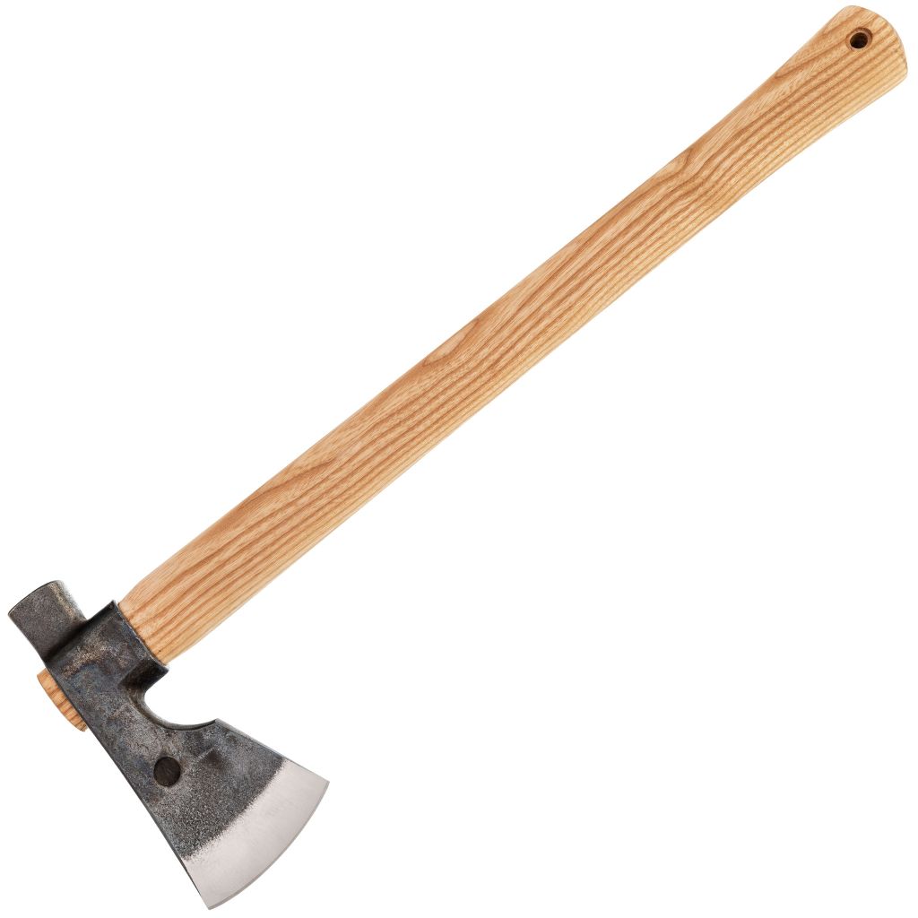 Томагавк Аника - сверхлегкий туристический инструмент, который станет незаменимым помощником в длительных пеших походах, а также выполнит функции охотничьего топора. Голова данной модели выкована из стали и прошла полный цикл термообработки с зонной закалкой лезвия на вязкость. Материал обладает повышенной прочностью и износостойкостью, а также хорошими антикоррозийными свойствами. Обух-молоток имеет ударную поверхность, что еще больше расширяет возможности инструмента. Топор с обухом-молотком укомплектован рукоятью из древесины ясеня, славящейся высокой твердостью и плотностью. Для сохранения эстетического вида, рукоять обработана тунговым маслом. Также оно защищает древесину от проникновения внутрь влаги, температурных перепадов и воздействия ультрафиолета.