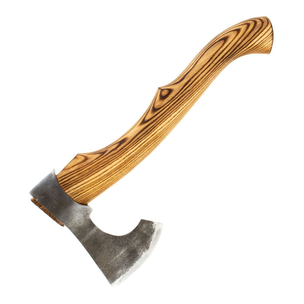 ТОПОР МОДЕЛЬ №10, СТАЛЬ ХВГ, МАСТЕРСКАЯ ВАУЛИНА это компактный вариант, который понравится тем, кто предпочитает отдых на природе другим видам отдыха. Средний размер и небольшой вес позволяют всегда держать топор в багажнике авто или в рейдовом рюкзаке. Топор выполнен с учетом пожеланий постоянных клиентом компании. Рукоятка топора имеет несколько зон, которые обеспечивают уверенную фиксацию в процессе работы. С помощью выступа на спинке рукояти и грибка в тыльной части топор хорошо контролируется и точно передает усилие от руки на рабочую поверхность. Голова топора имеет геометрию, которая сочетает в себе характеристики потеса, плотницкого топора и топора для мяса. Универсальная геометрия позволяет использовать топор для выполнения широкого круга задач. В комплекте вы найдете кожаный чехол, который обеспечивает безопасное хранение и транспортировку.