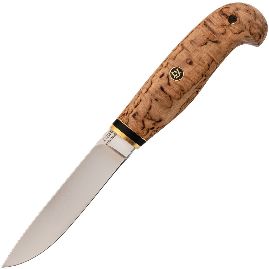 Рукоять Ножа Финский-2 выполнена из карельской березы — материала, который ценится за красоту и прочность. Каждая рукоять изготавливается литьем, что придает ножу индивидуальность. В сочетании с качественной сталью, рукоять обеспечивает плотный хват и комфорт при использовании.