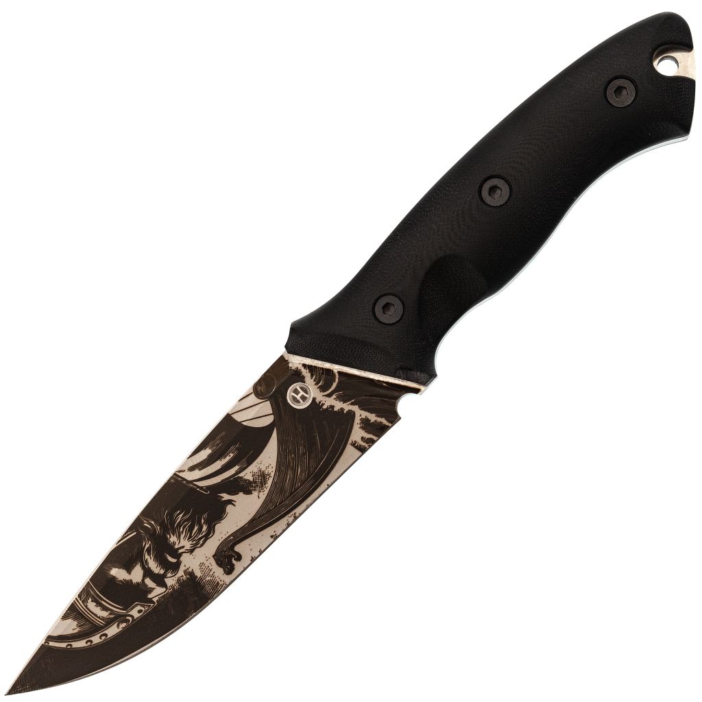 Prime от HONOR задуман как крупный фиксированный нож для тех, кто ценит основательные формы и понятную логику конструкции. Ничего лишнего - только то, что действительно нужно в работе. Широкий клинок сразу задаёт характер, а лазерная гравировка с суровыми викингами добавляет настроения и визуального веса. Это нож, в котором читается опыт Nozhikov и внимание к деталям, проверенным практикой.