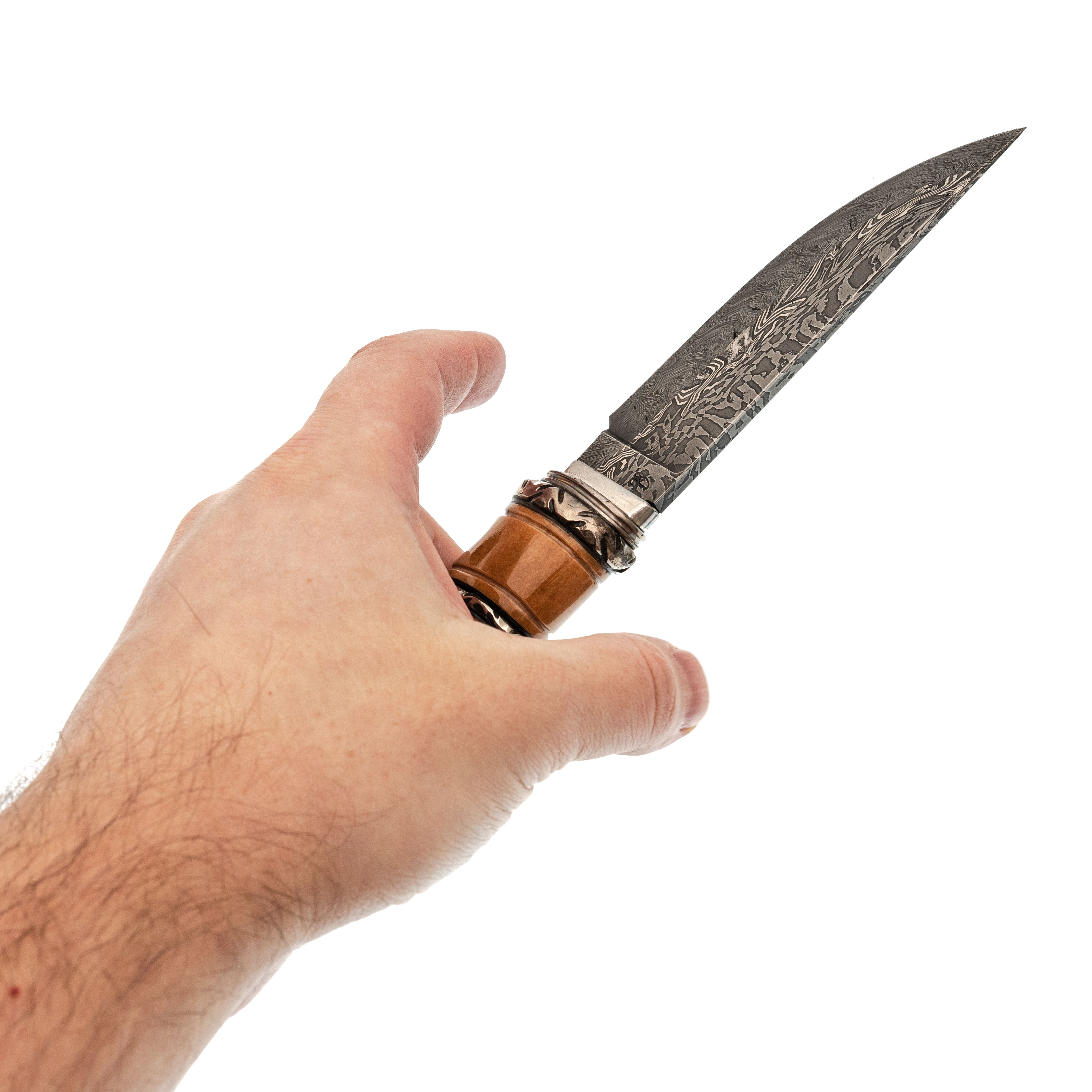 Потомственный кузнец Влад Матвеев, является одним из лучших кузнецов России. Его работы хорошо известны по всему миру. Основной его конёк,это мозаичный Дамаск с хорошо продуманными и подобранными пакетами сталей. Грамотной термической обработкой , прекрасными режущими свойствами и художественным вкусом. Его работы не только красивы и гармоничны но и удобно сидят в руке и хорошо держат заточку. Ножи Влада резко отличаются красотой кликов и удобством рукояток на большом изобилие Российского рынка.