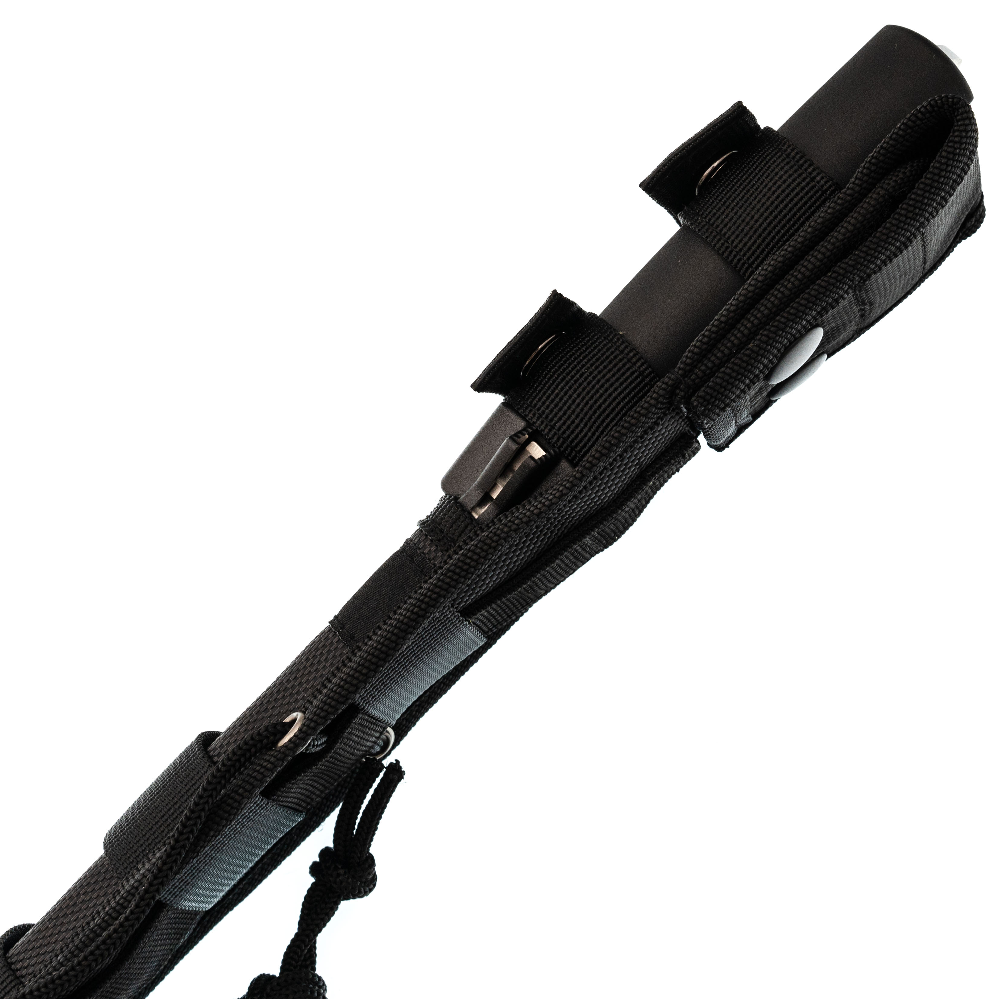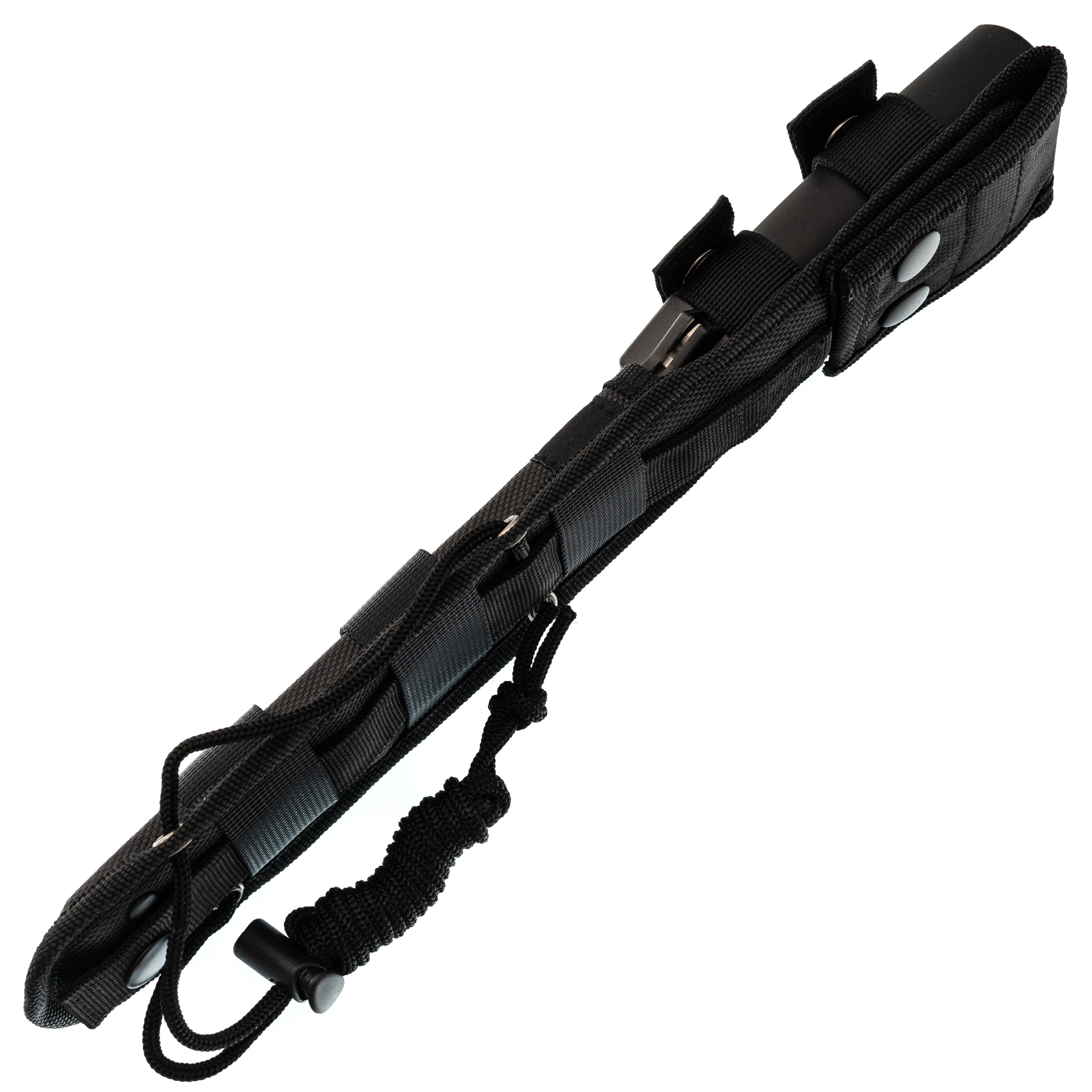 Нейлоновые ножны выполнены в тактической манере и подходят для разных вариантов размещения: