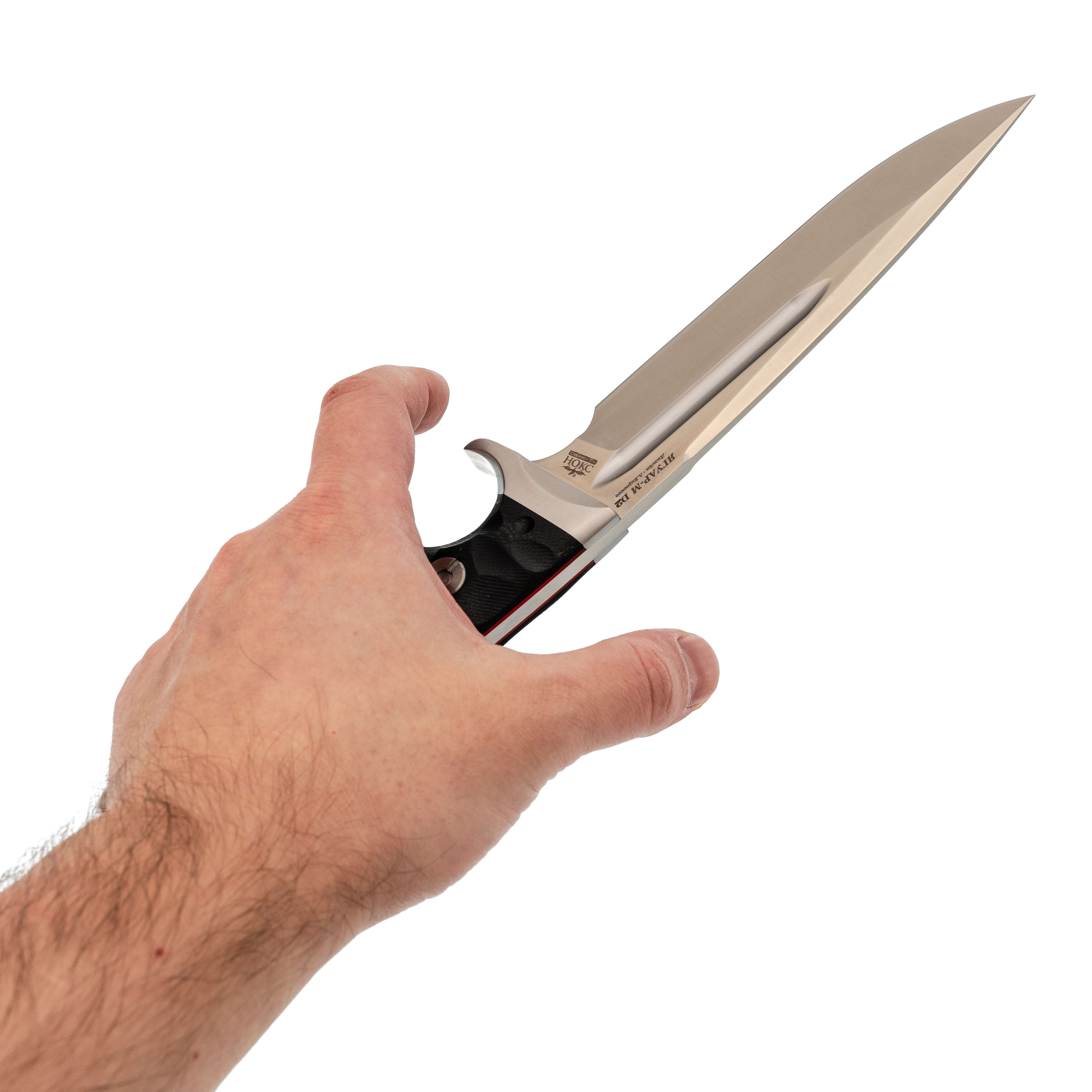 Ягуар М - крупный фиксированный нож для тех случаев, когда инструмент должен выдерживать серьёзную нагрузку и оставаться удобным в работе. Он из тактической линейки бренда, но по характеру вполне универсален: подойдёт для похода, базового лагеря и задач, где важны надёжность и контроль. Конструкция честная, без декоративных решений - всё сделано ради практики.