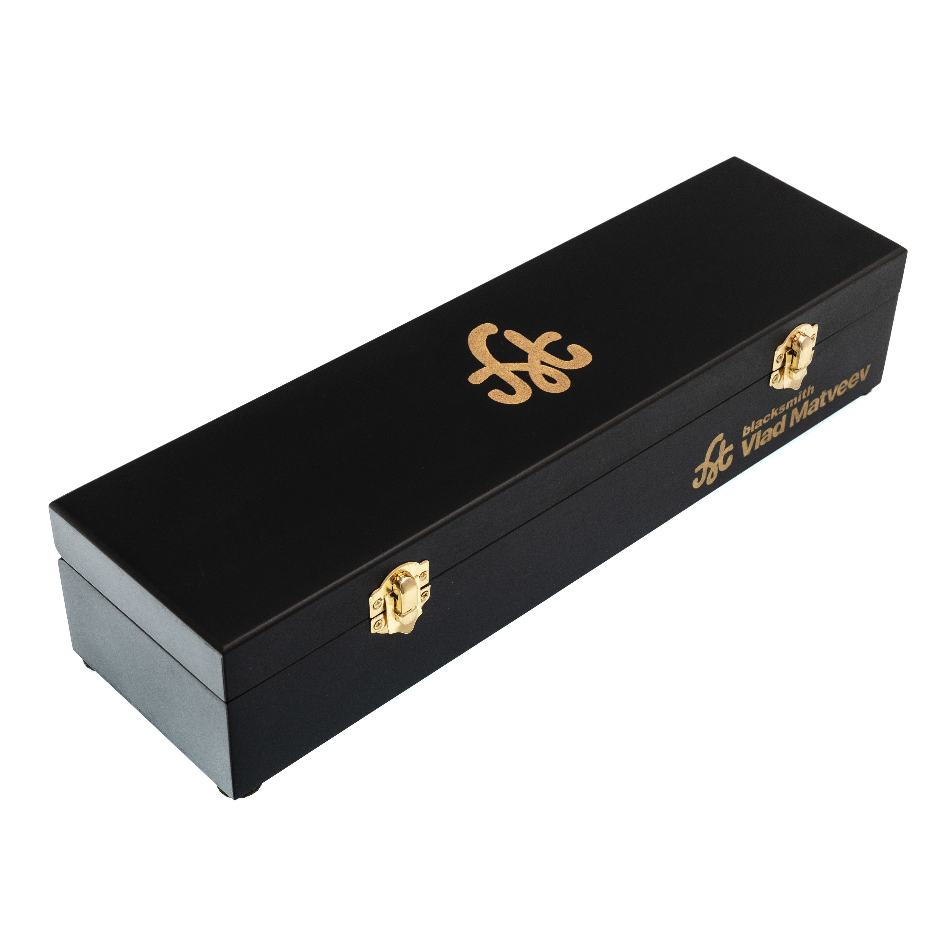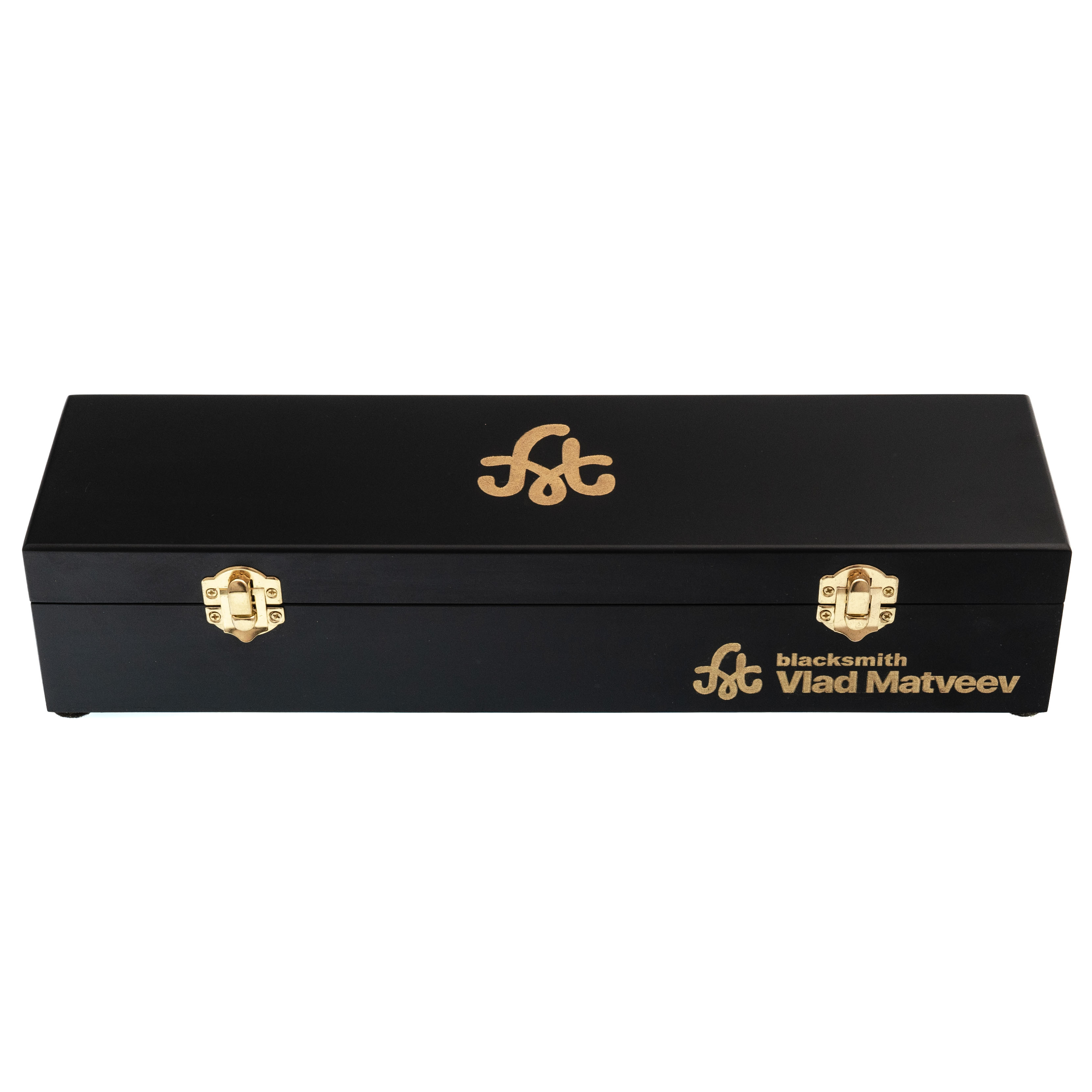 Потомственный кузнец Влад Матвеев, является одним из лучших кузнецов России. Его работы хорошо известны по всему миру. Основной его конёк, это мозаичный Дамаск с хорошо продуманными и подобранными пакетами сталей. Грамотной термической обработкой , прекрасными режущими свойствами и художественным вкусом. Его работы не только красивы и гармоничны но и удобно сидят в руке и хорошо держат заточку. Ножи Влада резко отличаются красотой кликов и удобством рукояток на большом изобилие Российского рынка.