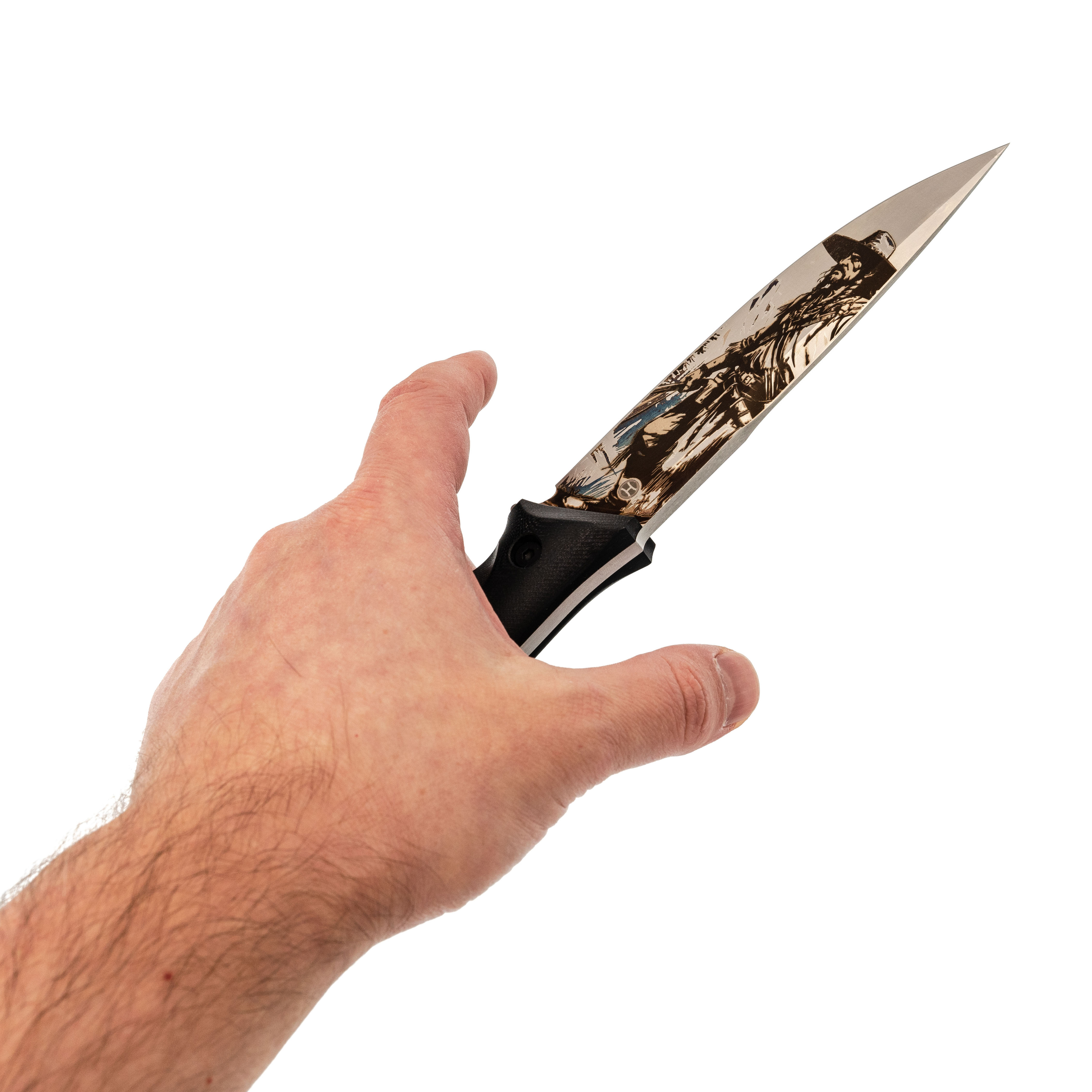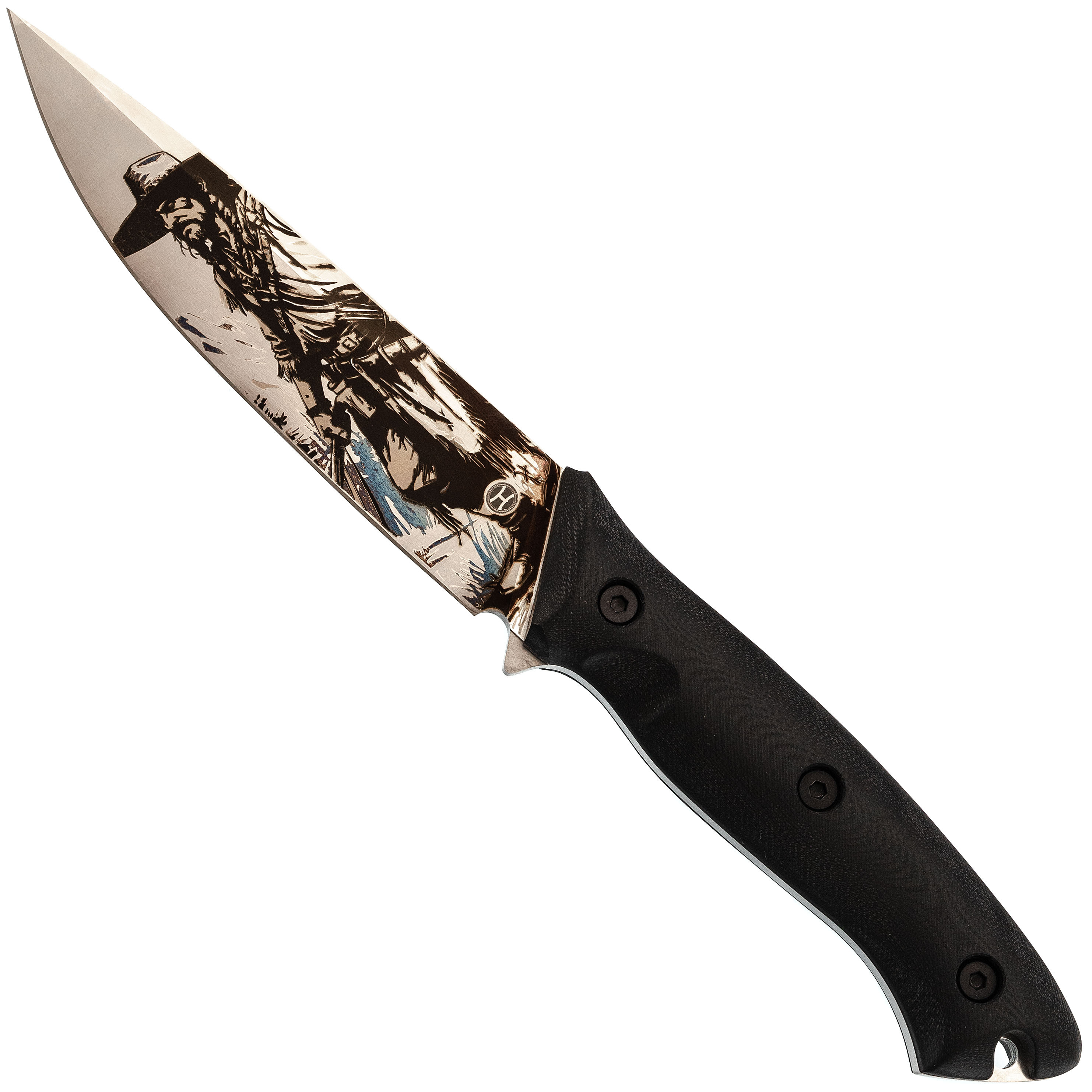 Ranger от HONOR - это про спокойную уверенность в инструменте. Крупный фикс без лишних усложнений, сделанный для тех случаев, когда нож берут не ради витрины. В нём чувствуется опыт Nozhikov: форма, размеры и баланс продуманы на основе реального использования. Визуальный акцент - лазерная гравировка с ковбоем и индейцем на клинке - добавляет характер, не мешая делу.