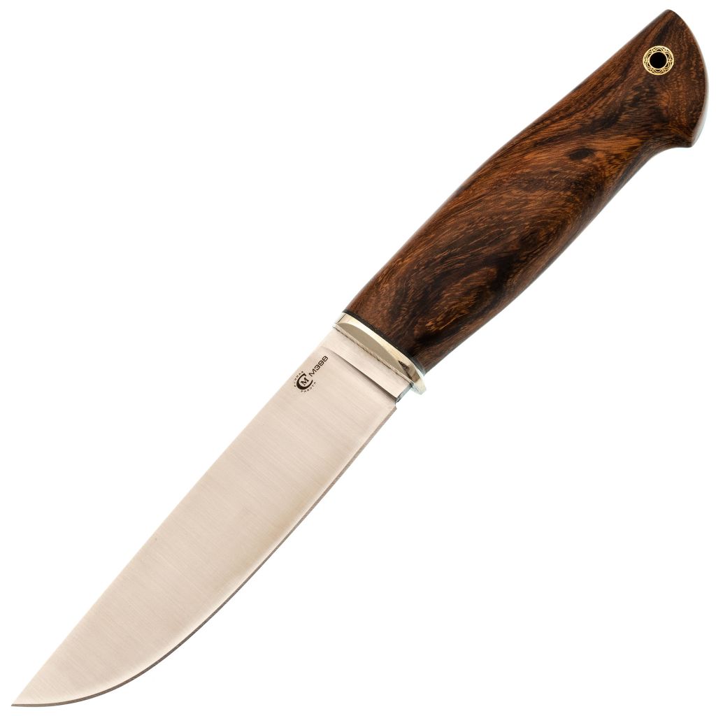 Ястреб - это надежный и стильный охотничий нож, который станет отличным спутником и для туризма. Он сочетает в себе высокое качество, удобство и производительность, что делает его универсальным инструментом для различных задач.Клинок изготовлен из премиальной порошковой стали Bohler M398, которая обеспечивает исключительную стойкость режущей кромки. Эта сталь относится к высшему классу и гарантирует длительное удержание остроты. Форма клинка - классический Drop-Point, проверенная временем и подходящая для широкого спектра задач. Прямые спуски от обуха обеспечивают легкое и эффективное резание, а также упрощают процесс строгания.Рукоять изготовлена из древесины айронвуда, материала, известного своей прочностью и долговечностью. Айронвуд придает рукояти не только надежность, но и приятные тактильные ощущения. Деревянная рукоять не холодит руку, что особенно важно в холодное время года.Ножны, выполненные из натуральной кожи, имеют погружную конструкцию, что обеспечивает безопасное ношение ножа. Они оснащены двумя видами подвеса: свободным и жестким, позволяя удобно носить нож на поясе или на снаряжении. Такая универсальность делает нож Ястреб отличным выбором для тех, кто ценит функциональность и эстетику.