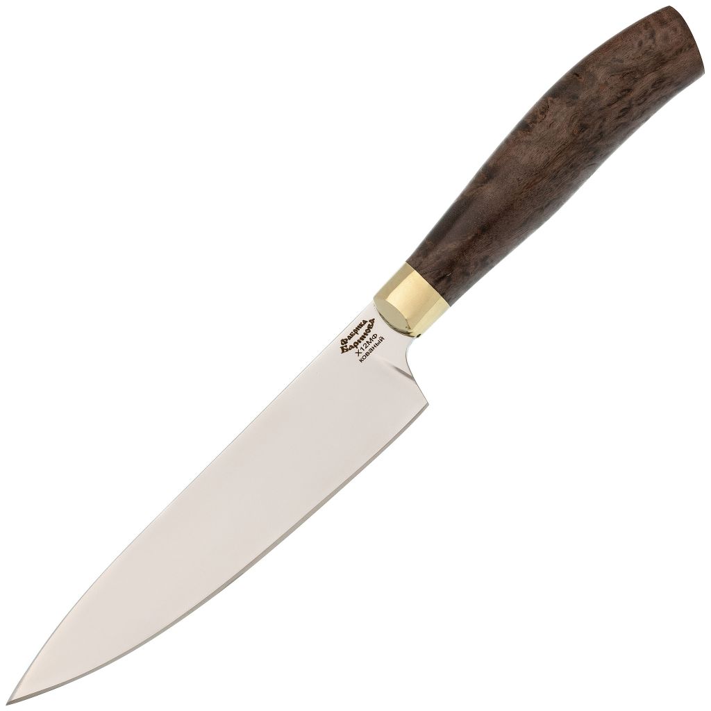 Нож кухонный Шеф-1, сталь Х12МФ латунь, карельская береза