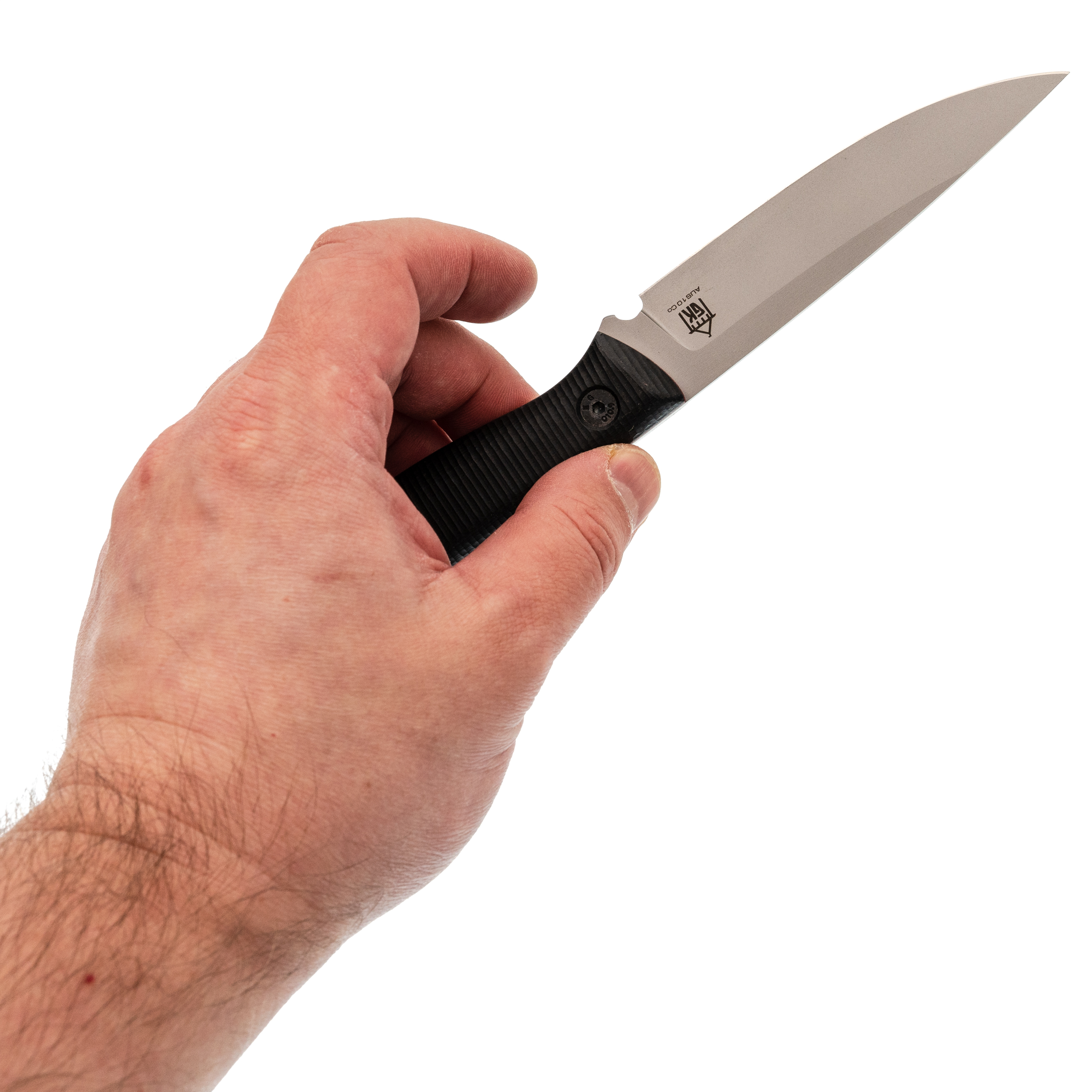 Сталь AUS-10Co - нержавеющий сплав с хорошим балансом между удержанием остроты, вязкостью и простотой ухода. Подходит для повседневного использования, спокойно переносит работу по продуктам, дереву и разным мелким задачам.