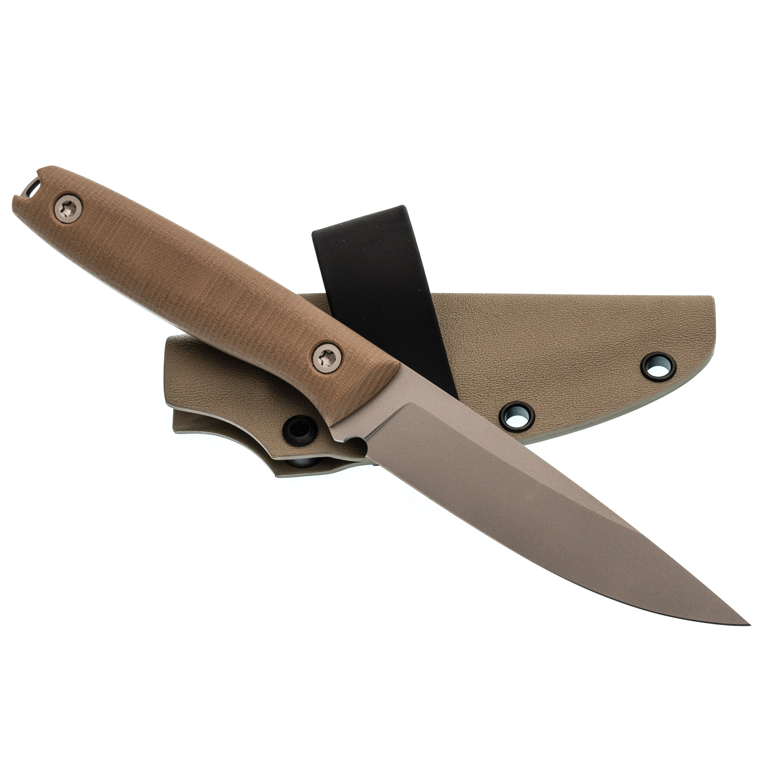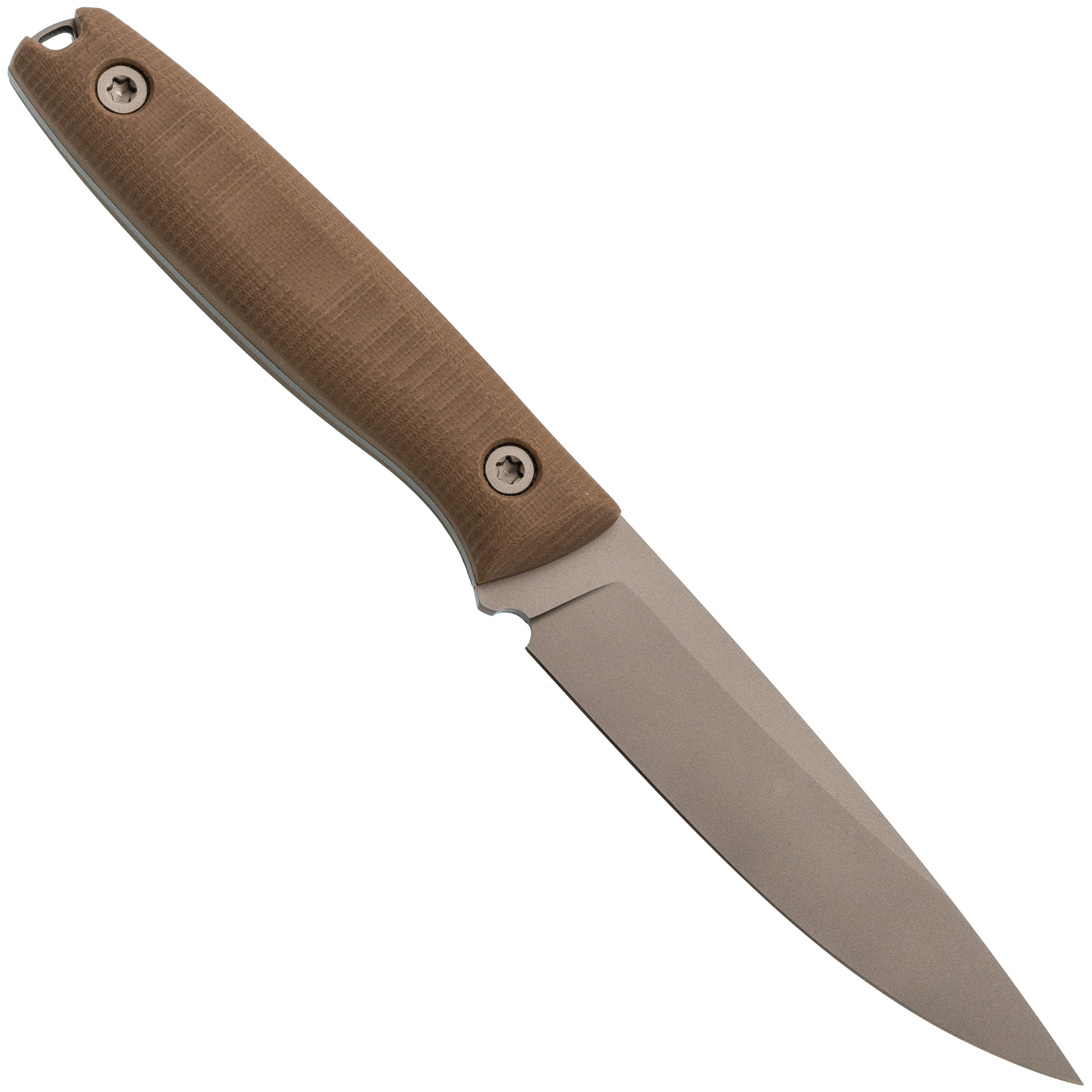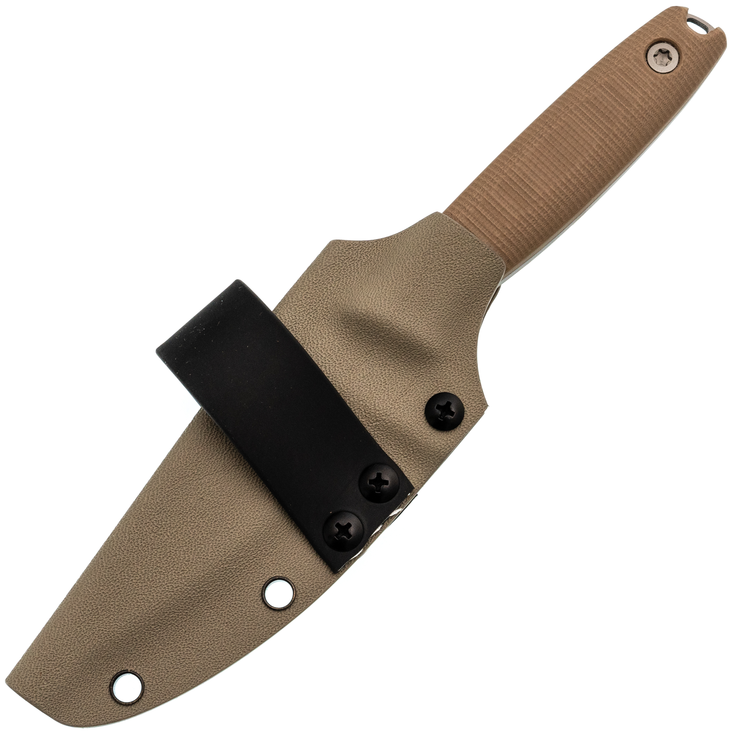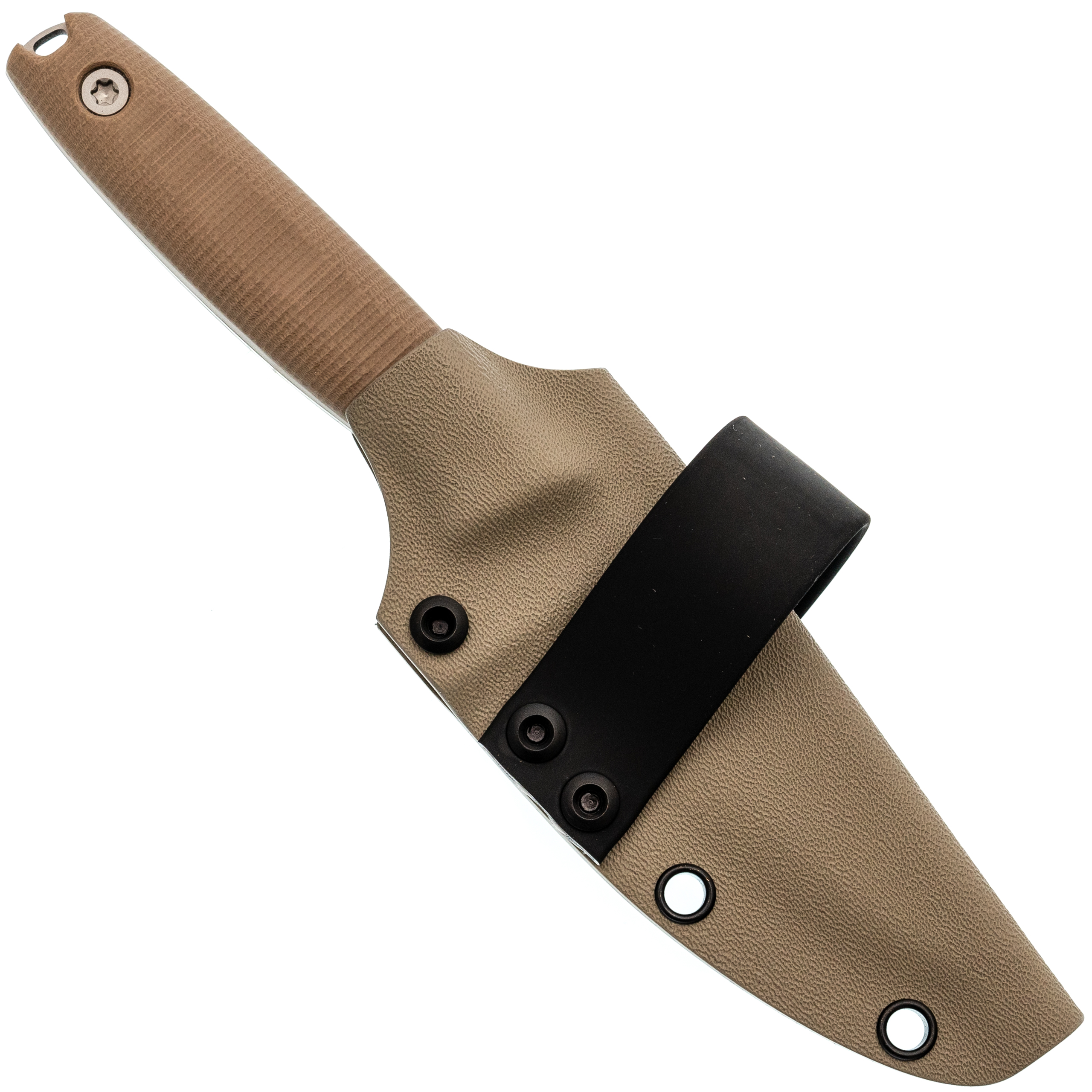 Рукоять из G10 - прочный композит, который не боится влаги, перепадов температуры и активного использования. Материал жёсткий, надёжный и отлично подходит ножу, рассчитанному на постоянную носку. Цепкая насечка помогает крепче удерживать рукоять.