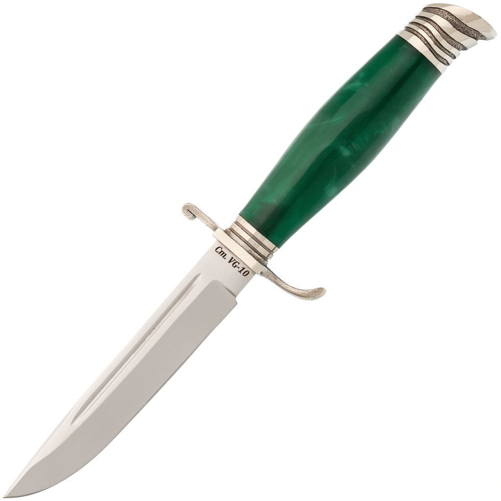Антарес Финка НКВД - это современная интерпретация легендарных ножей, которые использовались советскими войсками во время Великой Отечественной Войны. Этот нож является надежным и универсальным инструментом, сочетающим в себе историческое наследие и современные материалы.Клинок Антареса выполнен из высококачественной японской нержавеющей стали VG-10, которая известна своими превосходными характеристиками. Сталь VG-10 является популярной среди производителей ножей по всему миру благодаря своей способности долго держать заточку и высокой коррозионной стойкости. Она идеально подходит для универсальных ножей, обеспечивая отличный баланс между остротой реза и долговечностью. Клинок имеет классическую геометрию со спусками на 2/3, что обеспечивает оптимальное сочетание прочности и режущих свойств.Рукоять ножа оснащена крупной разветвленной гардой, которая надежно защищает руку пользователя во время работы с ножом. Сама рукоять изготовлена из акрила - материала, широко используемого в производстве ножей. Акрил обладает высокой прочностью, устойчивостью к воздействию влаги и легкостью, что делает рукоять удобной и надежной.Нож Антарес Финка НКВД поставляется в стильных ножнах из натуральной кожи с жестким подвесом, что позволяет удобно носить нож на поясе и обеспечивает быстрый доступ к нему при необходимости. Этот нож станет отличным выбором для коллекционеров, любителей истории и тех, кто ценит надежное и проверенные временем инструменты.