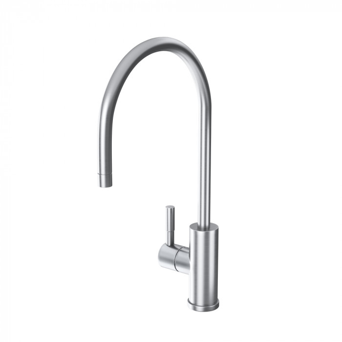Предназначен для использования в качестве крана для чистой питьевой воды. Выполнен из нержавеющей стали с матовым покрытием. Для установки крана используется пластиковый соединитель (фитинг) с клипсами.