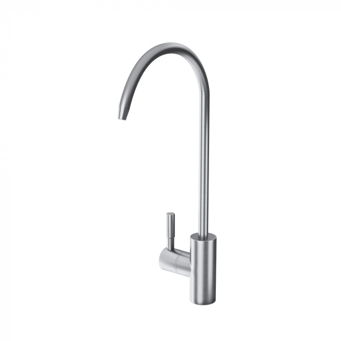 Предназначен для использования в качестве крана для чистой питьевой воды. Выполнен из нержавеющей стали с матовым покрытием. Для установки крана используется пластиковый соединитель (фитинг) с клипсами.