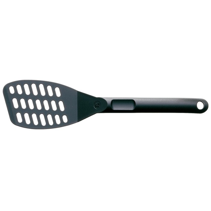 Лопатка кухонная изготовлена из высококачественного термостойкого пластика (270° C). Разработана для приготовления нежных по структуре продуктов, таких как рыба, морепродукты, блюда из яиц. Также может использоваться для приготовления блинов.