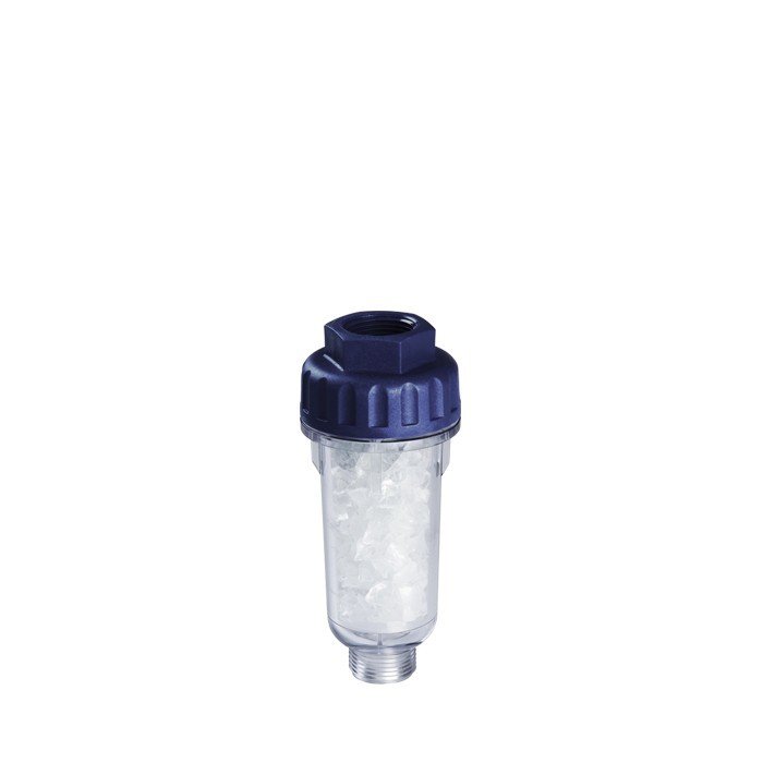 Предфильтр очищает воду для водонагревательных приборов и бытовой техники от солей жесткости, предотвращая появление накипи и коррозии. Более того, Стирон удаляет с нагревательных элементов уже имеющийся белый известковый налет. Подходит только для холодной воды.