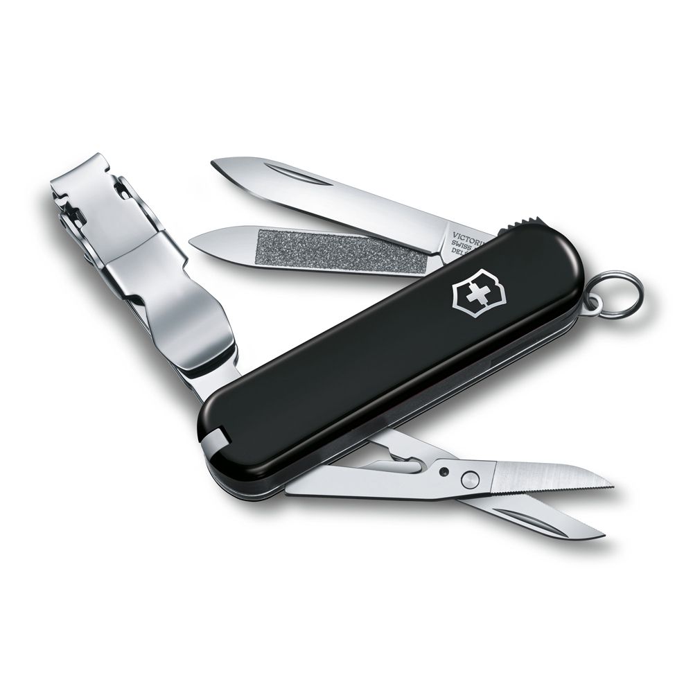 Перочинный нож NAILCLIP 580 имеет 8 функций:1. Лезвие2. Пилка для ногтей с:3. Инструментом для ухода за ногтями4. Ножницы с серрейторной заточкой5. Кусачки для ногтей6. Кольцо для ключей7. Пинцет8. Зубочистка