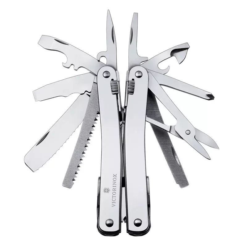 SwissTool Spirit X предлагает 26 функций, которые удовлетворят потребности как профессионалов, так и любителей приключений. Среди инструментов вы найдете ножи, отвертки, пилу, шило, консервный нож и др. Он подходит для походов, ремонта дома или экстремальных условий. Одной из особенностей является компактный чехол. В комплекте также идут аксессуары, которые расширяют возможности использования.