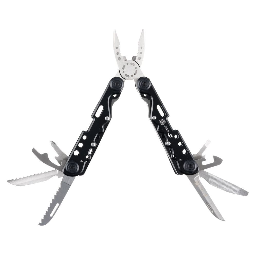МНОГОФУНКЦИОНАЛЬНЫЙ ИНСТРУМЕНТ STINGER С НАБОРОМ ИЗ 13 ФУНКЦИЙ:1. Острогубцы 2. Пассатижи3. Кусачки4. Лезвие большое плоское5. Лезвие с серрейторной кромкой6. Пила по дереву и металлу7. Напильник по дереву и металлу8. Отвёртка крестовая9. Отвёртка шлицевая большая10. Отвёртка шлицевая малая11. Инструмент для снятия изоляции12. Открывалка для бутылок13. Консервный нож