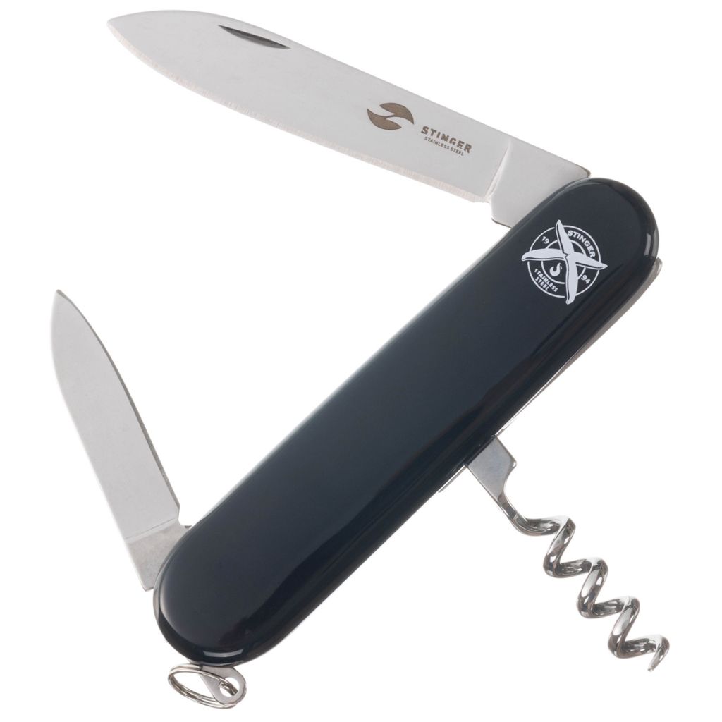Нож перочинный Stinger 90 мм, 4 функции, черный, в блистере