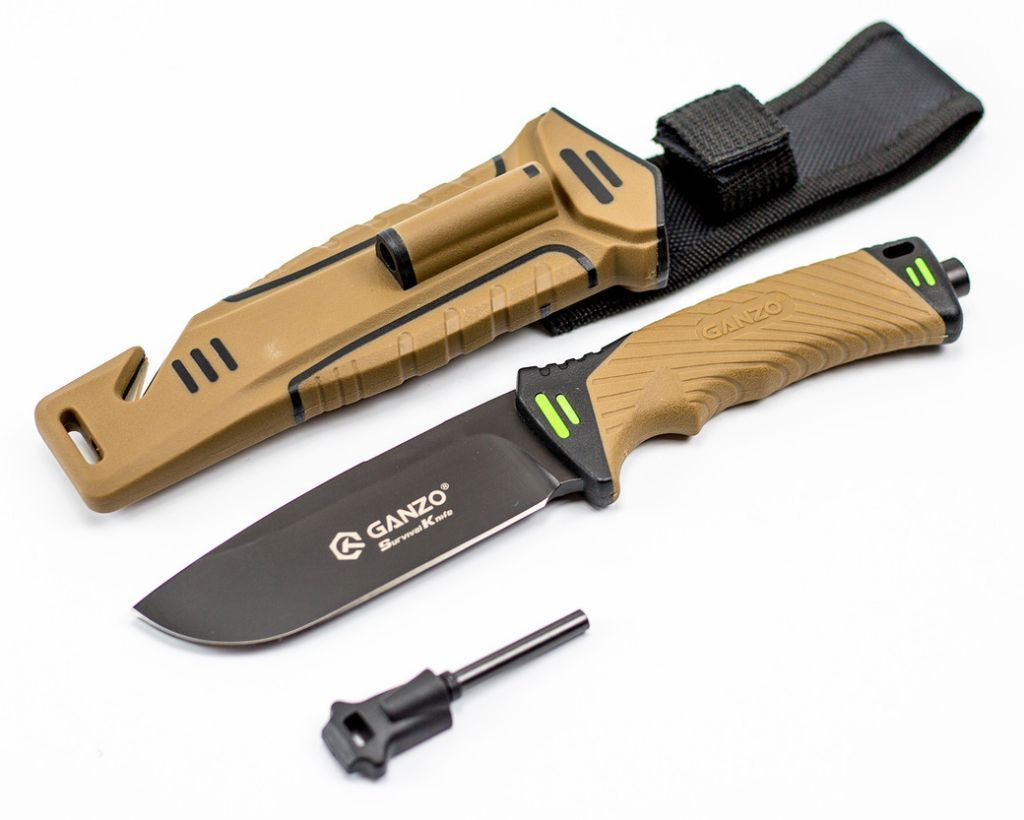 Представляем в наличии нож для выживания Ganzo G8012 коричневого цвета. В модель встроен стопорез и огниво, что делает этот аксессуар незаменимым помощником для активного туриста. Пластиковая рукоять не боится воды и снабжена креплением на ремень. Продается модель с удобным чехлом-ножнами с фиксатором на липучке для предотвращения выпадения во время тряски. Клинок приспособлен для эксплуатации в экстремальных условиях и выдерживает все испытания временем и нагрузками.
