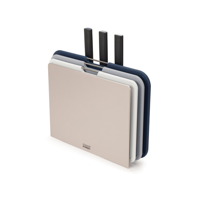 Доски имеют закругленные края и нескользящие ножки. Внутренние края удерживают влагу и крошки. За счет текстурированной поверхности не видно царапин. Доски изготовлены из пластика, а ручки – из нержавеющей стали. Их можно мыть как вручную, так и в посудомоечной машине.