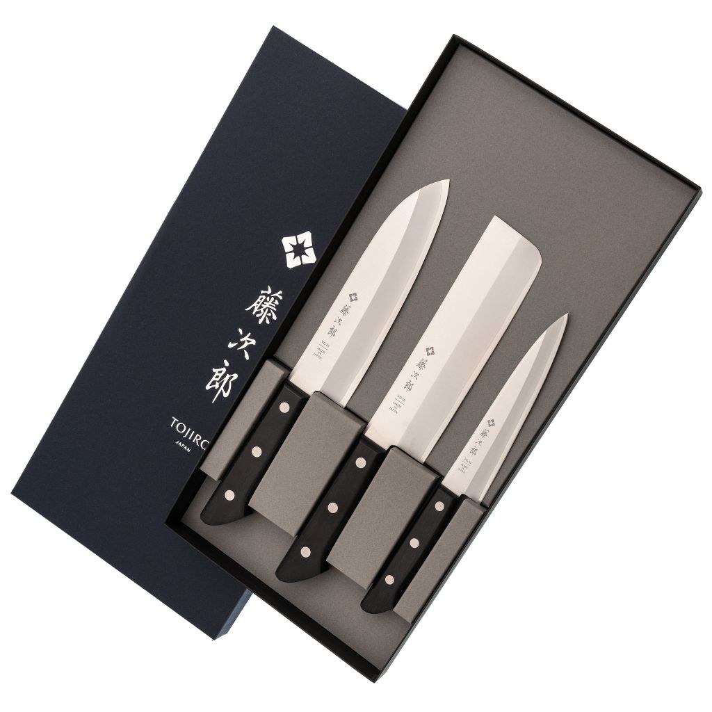 Этот эксклюзивный набор кухонных ножей Tojiro TBS-300 представляет собой идеальное сочетание функциональности, качества и эстетики. Упакованный в изысканную подарочную коробку, этот набор станет отличным подарком для всех, кто ценит кулинарное искусство. Состав набора:1. Большой шеф-нож Сантоку с длинной клинка 170 мм - универсальный помощник для нарезки мяса, рыбы, овощей и фруктов. Его длинное и прочное лезвие обеспечивает легкость и точность в выполнении любых кулинарных задач. 2. Шинковочный нож Накири с длиной клинка 165 мм - идеален для нарезки тонких ломтиков овощей и фруктов, а также для измельчения зелени. 3. Универсальный нож с длиной клинка 135 мм - более узкий и короче чем Сантоку, подойдёт для любой задачи. Клинки у ножей выполнены из японской стали VG-10 в обкладках из мягких нержавеющих сталей. Ламинирование повышает коррозионную стойкость ножа а так же позволяет лучше закалить сердечник из VG-10, тем самым выжав все соки из этой стали.Рукоятки из стабилизированной древесины предоставляют комфортный хват, не подвержены воздействию влаги и не впитывают запахов.Заточка на гритности 8000 обеспечивает чрезвычайно острую режущую кромку, которая легко справляется с любыми продуктами, минимизируя усилия при нарезке. Набор кухонных ножей Tojiro TBS-300 - это не просто инструменты для кухни, а настоящее произведение искусства, которое поможет вам достичь новых высот в кулинарии и сделает процесс приготовления пищи еще более приятным и эффективным.