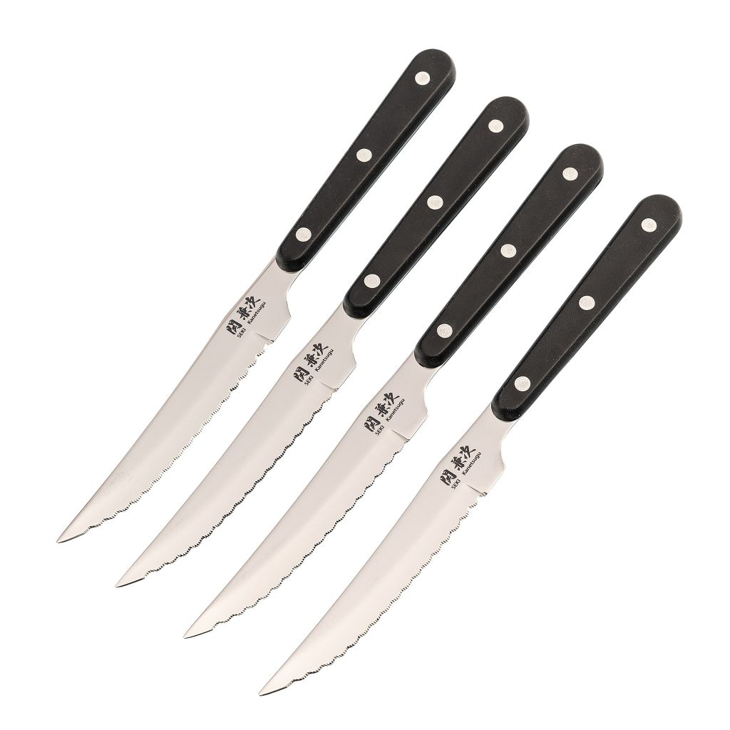Деликатно нарезать ровные кусочки мяса для сочных и ароматных стейков вместе с современным набором из 4-х ножей для стейков T-Rex 1202 просто как никогда. Данный комплект из 4 инструментов разработан японскими мастерами ножевого дела в кооперации с ведущими кулинарами востока. Специальная серрейторная заточка лезвий с мелкими зубчиками отлично справляется с плотными мясными волокнами и позволяет резать ножом на тарелках, чего не стоит делать с обыкновенной плейновой заточкой.Нержавеющая молибден-ванадиевая сталь Mo-V имеет низкое содержание углерода и высокое содержание хрома, что обеспечивает высочайшее сопротивление коррозии. Выбирайте уже сейчас на свою кухню и в подарок удобный и практичный набор ножей для стейка!