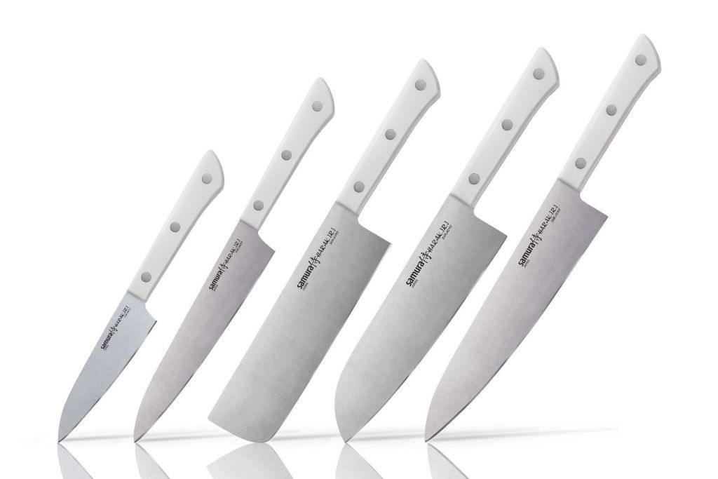 Функциональный набор кухонных ножей Samura "Harakiri" (SHR-0250W) найдет свое применение на любой кухне, как домашней, так и профессиональной. В состав комплекта входят 5 предметов: традиционный шеф-нож, топорик-накири, сантоку, овощной и универсальный нож. Клинки японских ножей для кухни Самура "Харакири" изготовлены из нержавеющей стали марки AUS-8 с оптимальным сочетанием показателей твердости, гибкости и механической выносливости. Режущая кромка с двусторонней заточкой хорошо поддается полировке и шлифовке. В качестве материала для изготовления рукоятей производитель использовал белый ABS-пластик, который не подвержен воздействию влаги и температурных перепадов.