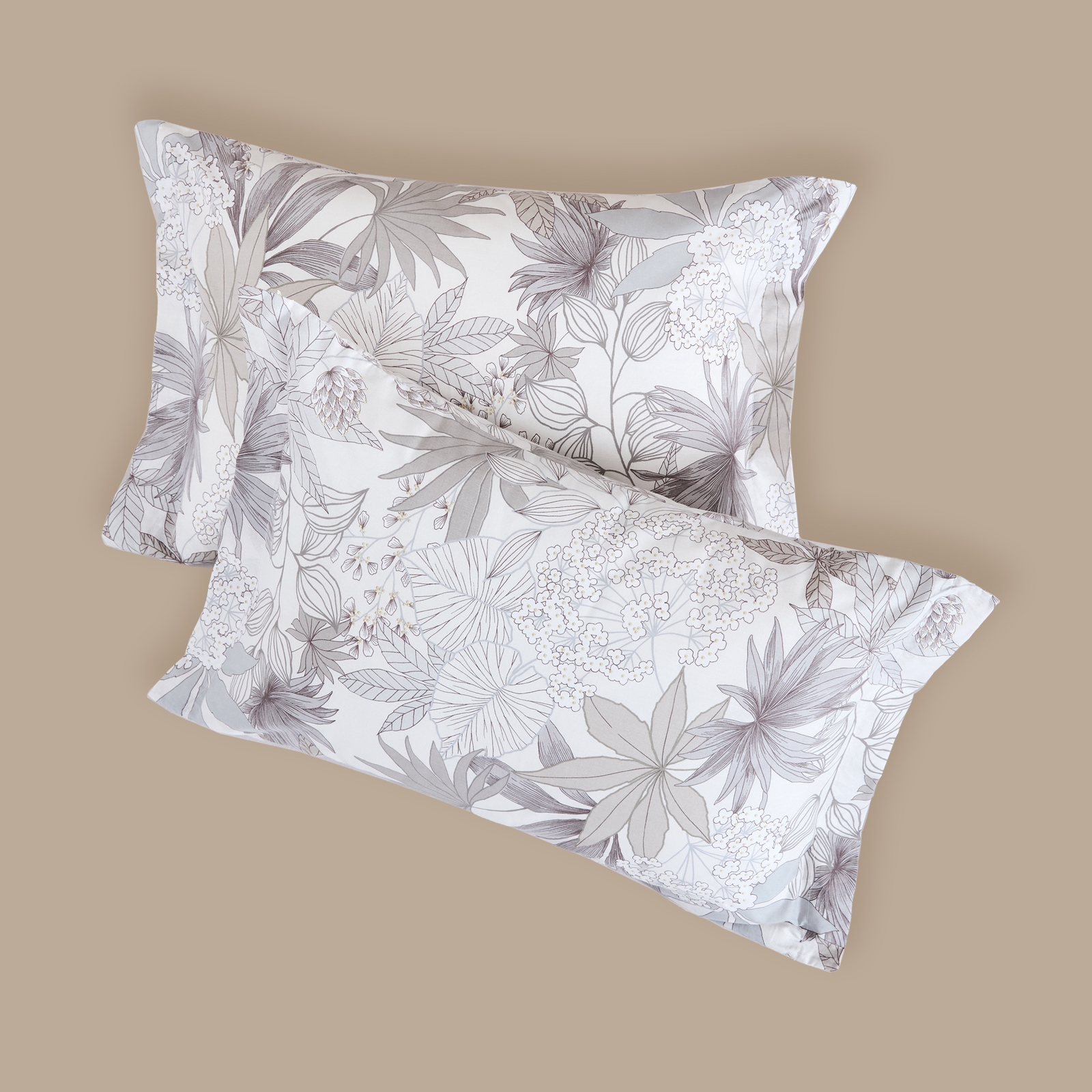 Комплект наволочек Латери (листья) с ушками, коричневый