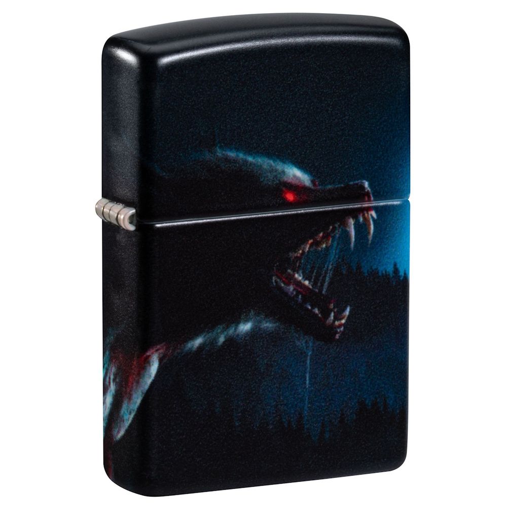 Зажигалка ZIPPO Horror Wolf с покрытием 540 Matte, латунь/сталь, черная, 38x13x57 мм