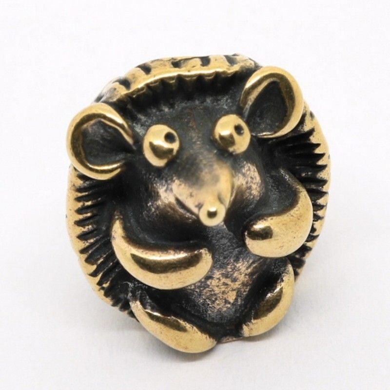 Бусина "Ёжик" от Рязанской Литейной Мастерской изображает Ёжика, забавно выпучившего глаза. Возможно, он увидел Лису, как вы думаете? Так или иначе, если вы повесите его на темляк, он будет с любопытством смотреть на окружающий мир, выглядывая из кармана. Данная бусина будет отличным дополнением к нашему хэнку Ёжиков. В качестве материала мастерская использует бронзу, бусина будет хорошо держаться как на кожаном шнурке, так и 550 паракорде. Высота 18 мм, вес около 13 гр, размер отверстия около 6 мм.
