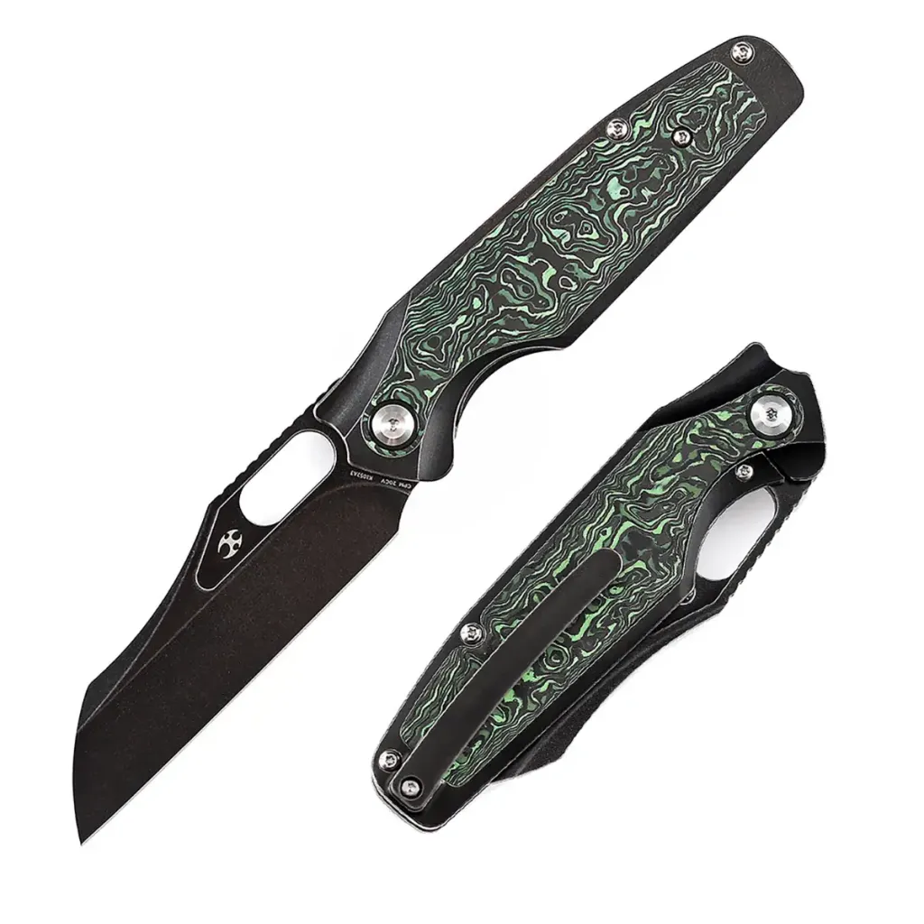 Рукоять Tuckamore разработана с акцентом на эргономику. С одной стороны - строгий чёрный титан, с другой - выразительный карбон с черно-зелёным рисунком. Такая комбинация не только эстетична, но и способствует надёжному и комфортному удержанию ножа в руке.
