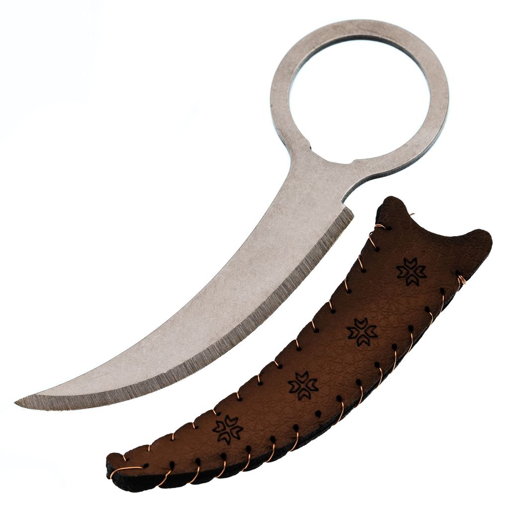 Изготовленный из износостойкой инструментальной стали Х12МФ, "Крюк" отличается высокой прочностью и долговечностью. Отверстие в рукояти позволяет крепить нож к снаряжению или ключам, а комплектный кожаный чехол обеспечивает безопасное и аккуратное хранение.