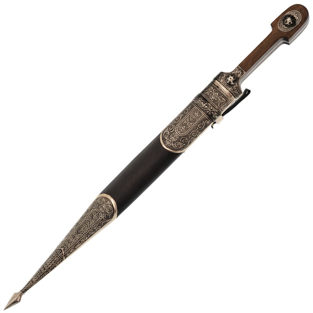 Представляем вам сувенирный кинжал кавказских казачьих войск образца 1904 года - идеальный подарок для исторических энтузиастов и любителей коллекционирования. Этот кинжал является точной репликой оригинала, созданной с максимальной детализацией и вниманием к деталям. Он отлично передает атмосферу и дух того времени, когда кавказские казачьи войска играли важную роль в истории России. Кинжал имеет прекрасную отделку, сделанную из высококачественных материалов. Рукоять выполнена из дерева с резными узорами, а клинок из нержавеющей стали с гравировкой, отражающей традиции и символику казачества. Этот сувенирный кинжал не только является отличным подарком, но и прекрасно украсит интерьер вашей комнаты. Он станет ярким акцентом и добавит атмосферы истории и традиций в ваш дом. Не упустите возможность приобрести этот уникальный сувенирный кинжал кавказских казачьих войск образца 1904 года и порадуйте себя или своих близких историческим подарком, который будет радовать глаза и вызывать интерес на протяжении многих лет. В подарок к кинжалу можно выбрать подарочный футляр.