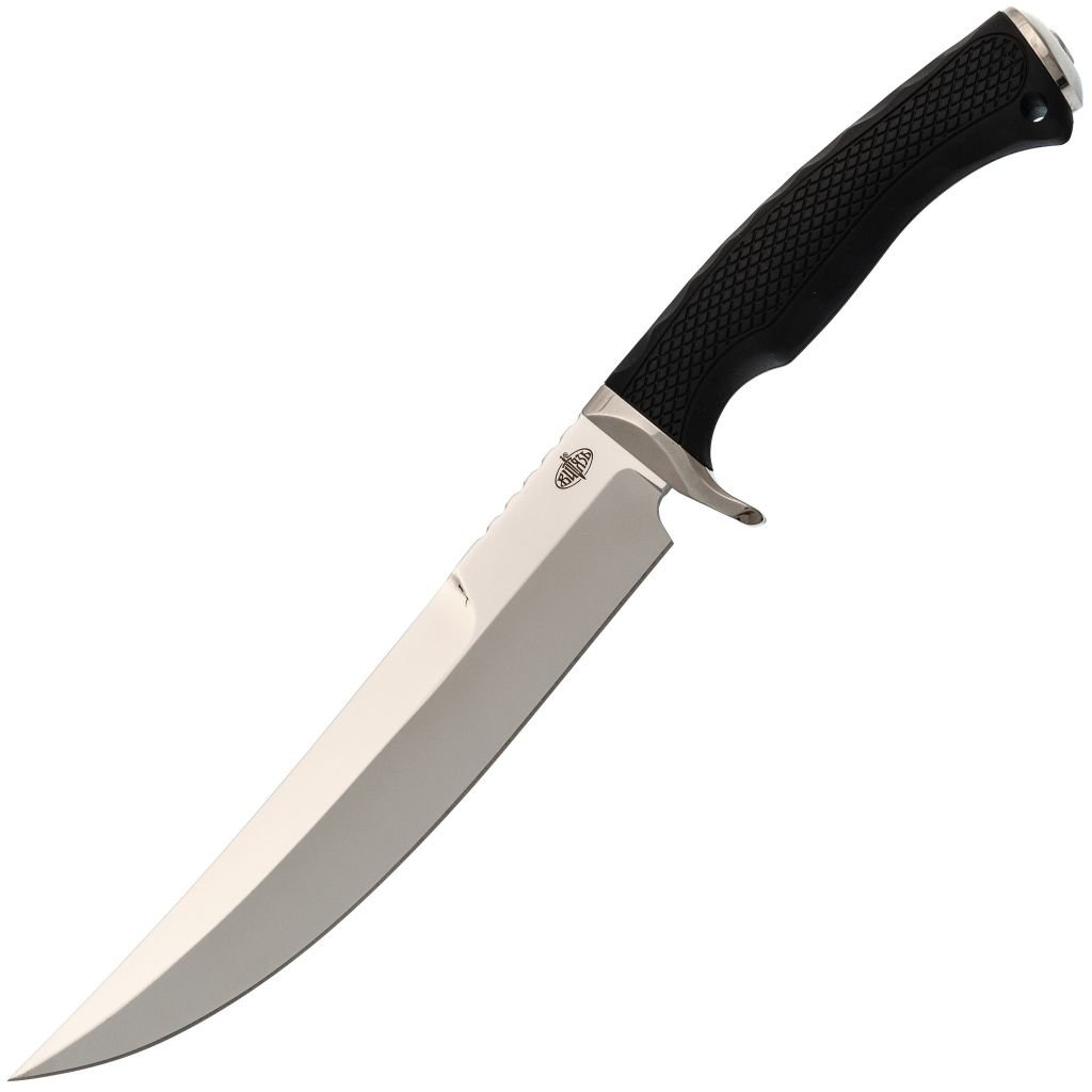 Основа хвата - резинопластик: материал, сочетающий эластичность и жёсткость. Он не боится перепадов температур и влаги, сохраняя форму и текстуру. Благодаря эргономичной форме и шершавой поверхности, нож буквально «впивается» в ладонь, а массивный подпальцевый упор с выемкой защищает от соскальзывания.