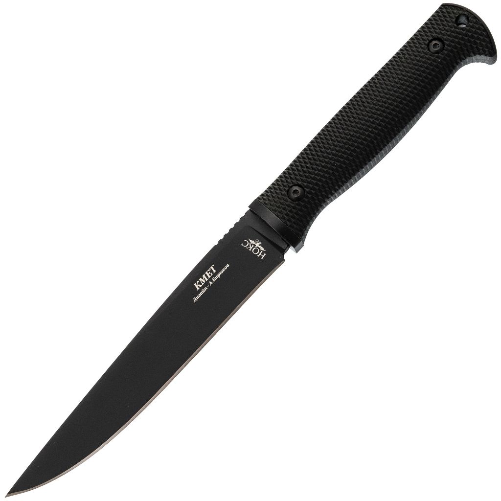 НОКС Кмет - универсальный нож, готовый к любым испытаниям, будь то поход, тактическая операция или охота. Его эргономичный дизайн и продуманная конструкция делают его удобным и многофункциональным инструментом.Клинок из стали AUS-8 - это проверенный выбор для ножей, поскольку сталь легко затачивается и демонстрирует высокую прочность. Геометрия клинка обеспечивает эффективный и точный рез, а прямые спуски от обуха улучшают контроль при строгании. Матовое покрытие не только защищает от коррозии, но и придает ножу незаметный внешний вид.Рукоять из резинопластика гарантирует комфорт и надежный хват даже в сложных условиях. Мелкая насечка обеспечивает необходимое сцепление, не причиняя дискомфорта. Такой материал рукояти прост в уходе и долговечен.Пластиковые ножны - это сочетание легкости и прочности, подходящее для любой погоды. Они надежно крепятся на снаряжение благодаря системе Molle, а дополнительные элементы позволяют настроить ношение ножа по своему усмотрению.