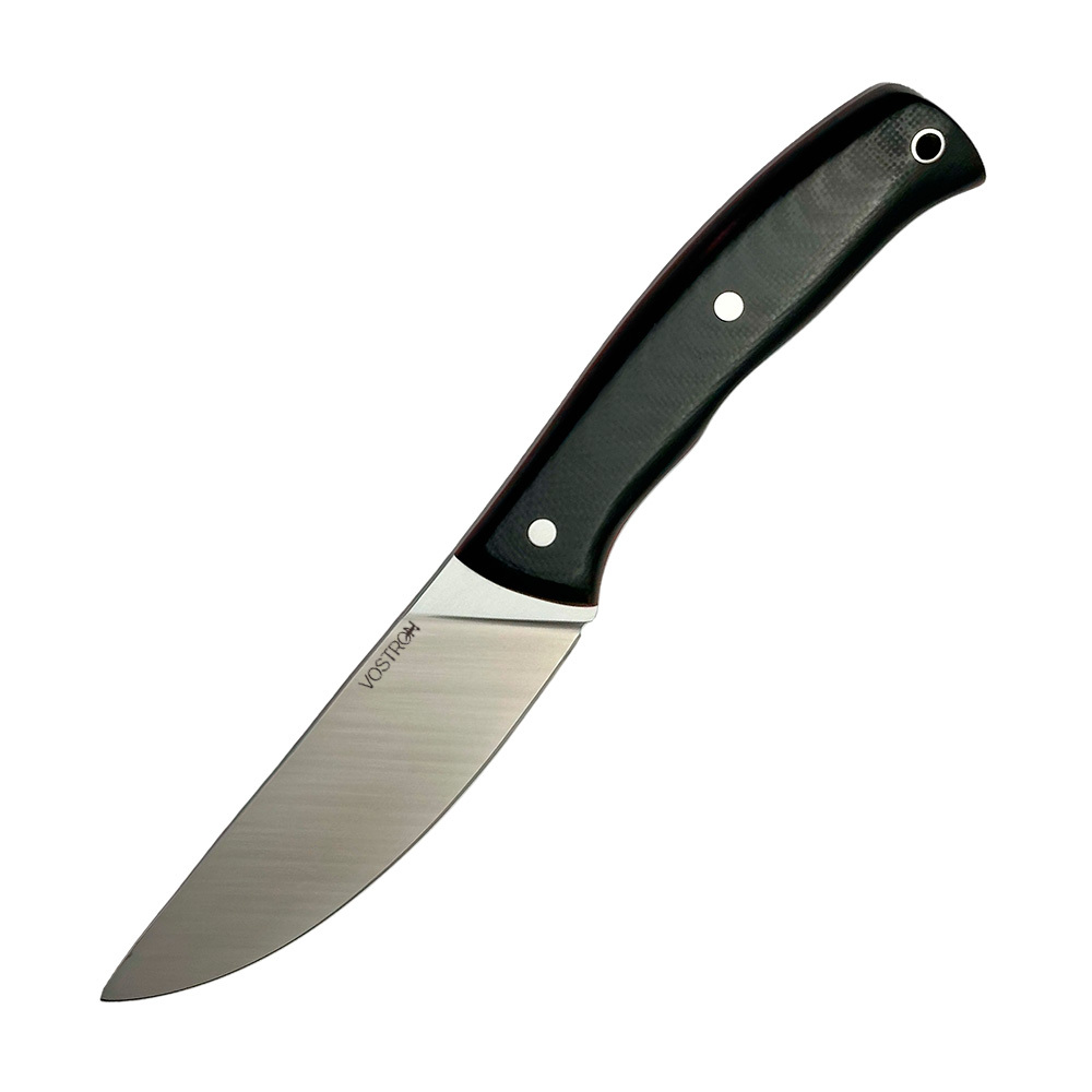 Клинок - сталь Х12МФ (аналог D2):Сплав с высокой твёрдостью и устойчивостью к выкрашиванию обеспечивает сохранность режущей кромки даже при контакте с твёрдыми материалами, такими как дерево или кость. Подходит для грубых и деликатных работ.