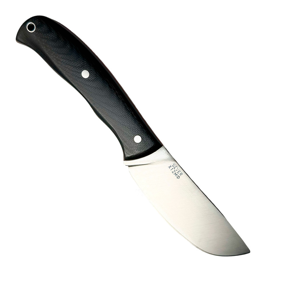 Клинок - сталь Х12МФ (аналог D2):Твёрдый сплав инструментального класса с оптимальным соотношением остроты, устойчивости к износу и способностью выдерживать интенсивные нагрузки. Надолго сохраняет заточку и отлично переносит контакт с древесиной, пищей и синтетическими материалами.