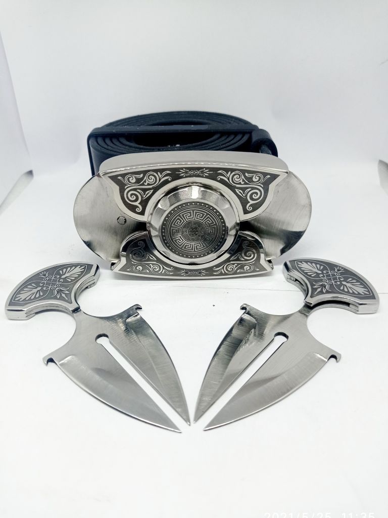 Пряжка с двумя ножами.Ремень из натуральной кожи.Mешочек для хранения и переноски.Подарочная коробка(дерево).Паспорт изделия (Сертификат + Патент)